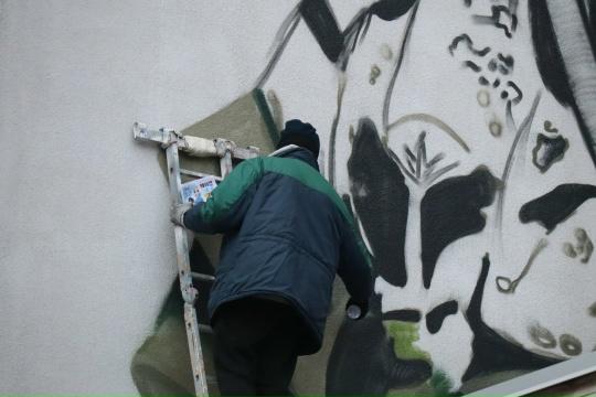 Создание мурала сопровождается участием курских и белгородских художников. На стене уже появился эскиз, и работы по нанесению красок только начинают набирать обороты. Это не первая работа по историко-патриотической тематике данной группы художников в Курске, ведь ранее они создали мурал в парке Дзержинского, посвященный рыльскому мореплавателю Шелехову, а также граффити на стене воинской части на улице Красной Армии и на ограждении железнодорожного вокзала.