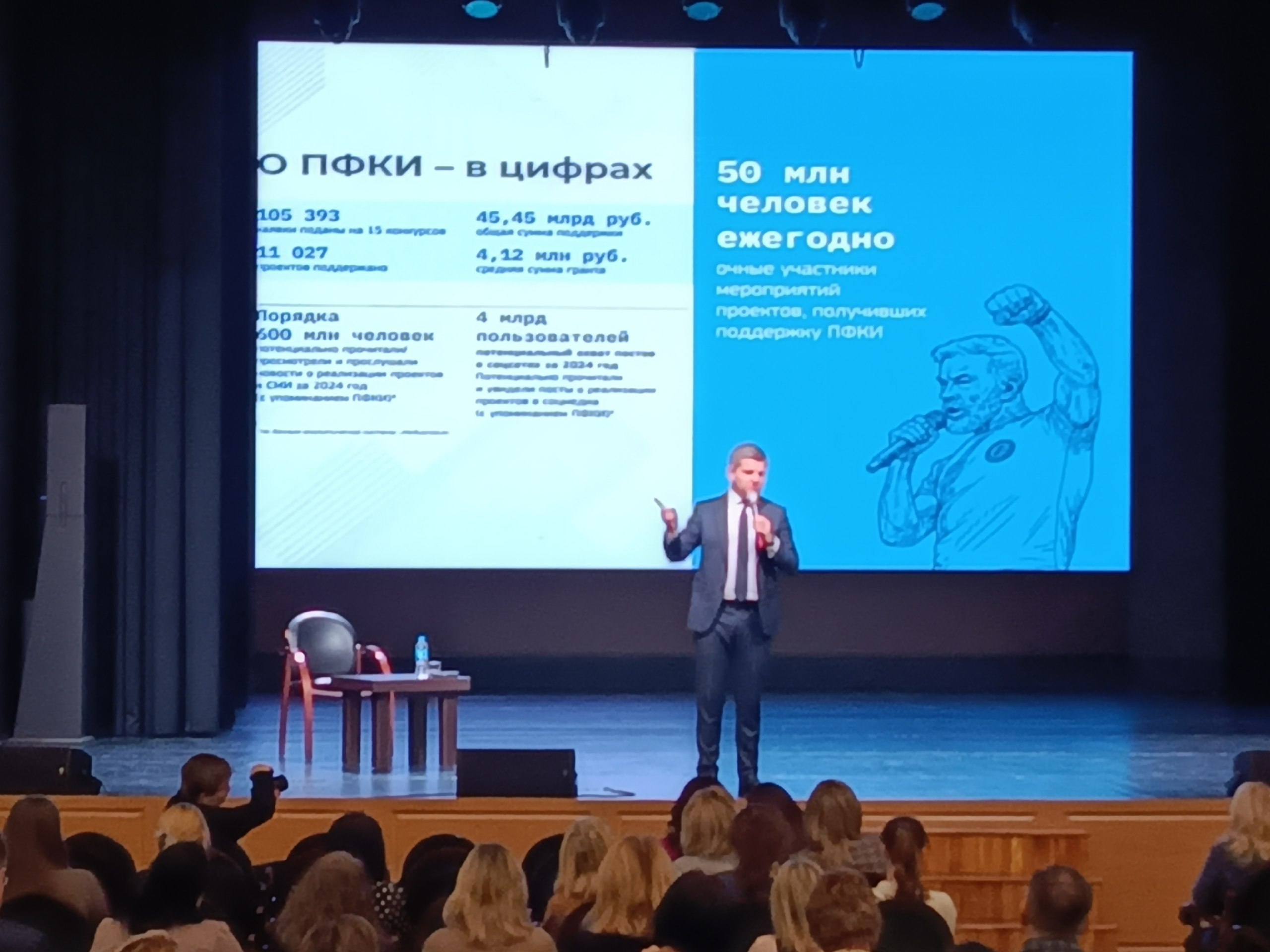 В концертном зале «Свиридовский» генеральный директор Президентского фонда культурных инициатив Роман Карманов встретился с победителями и соискателями грантовой поддержки фонда. На встрече присутствовала делегация Конышевского района в лице сотрудников районного Дома культуры и Конышевской детской библиотеки.