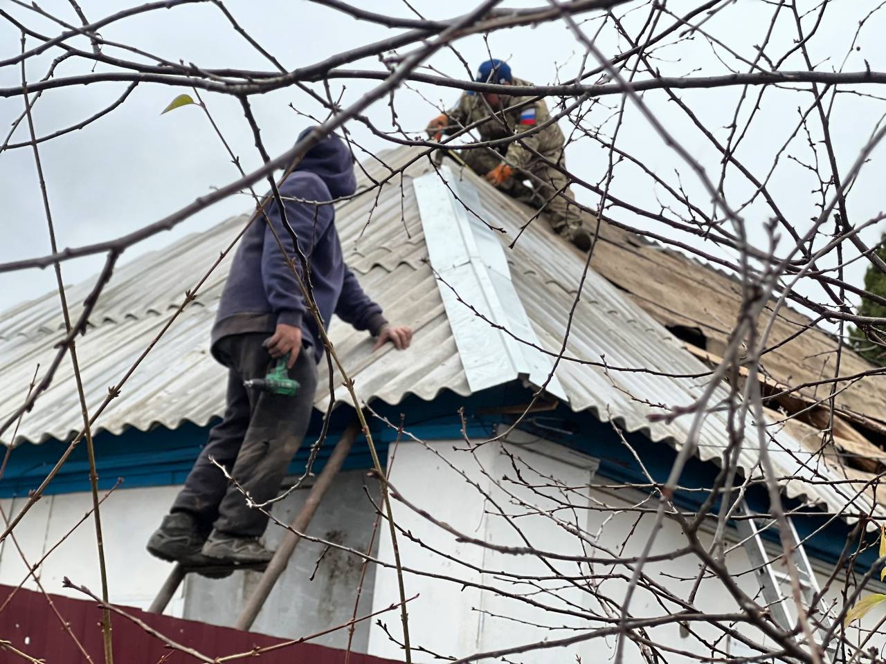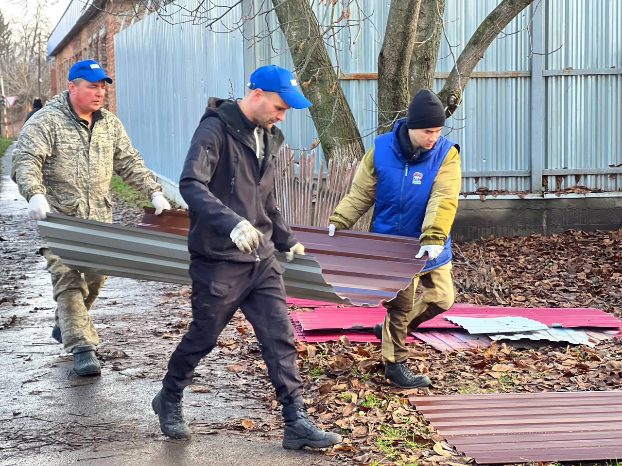 В жилом доме Льгова Курской области, где волонтеры лагеря Единой России продолжают устранять последствия прилета БПЛА, произошедшего накануне, установили на забор металлический профлист, закрыли тепловой контур на чердаке и продолжают восстановление кровли.