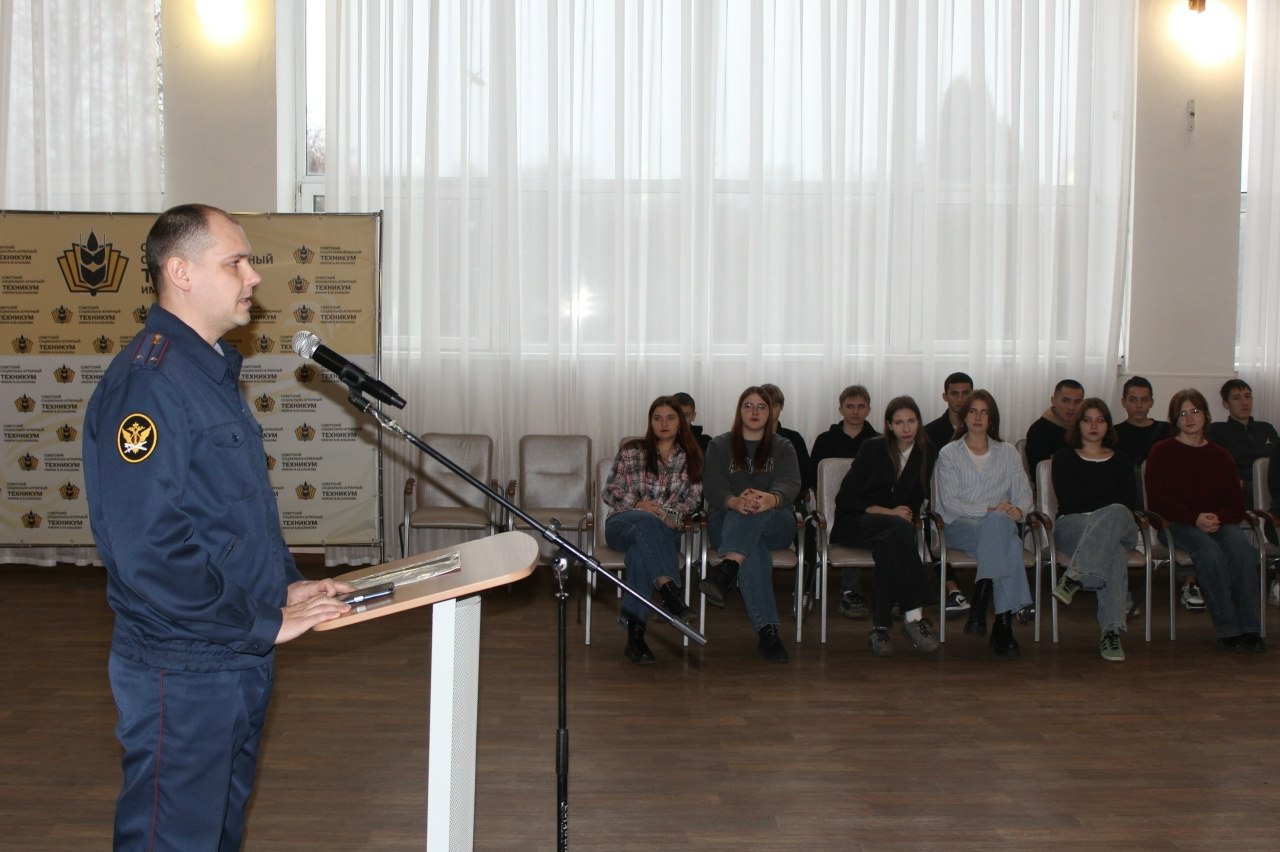 Студентам разъяснили ключевые понятия «правонарушение» и «преступление», их виды, а также основания для постановки несовершеннолетних на профилактический учет. Особое внимание уделили возрасту, с которого наступает ответственность несовершеннолетних за противоправные действия.