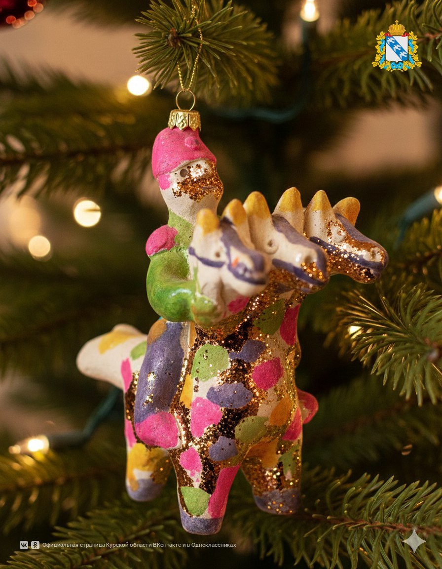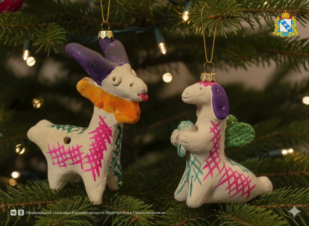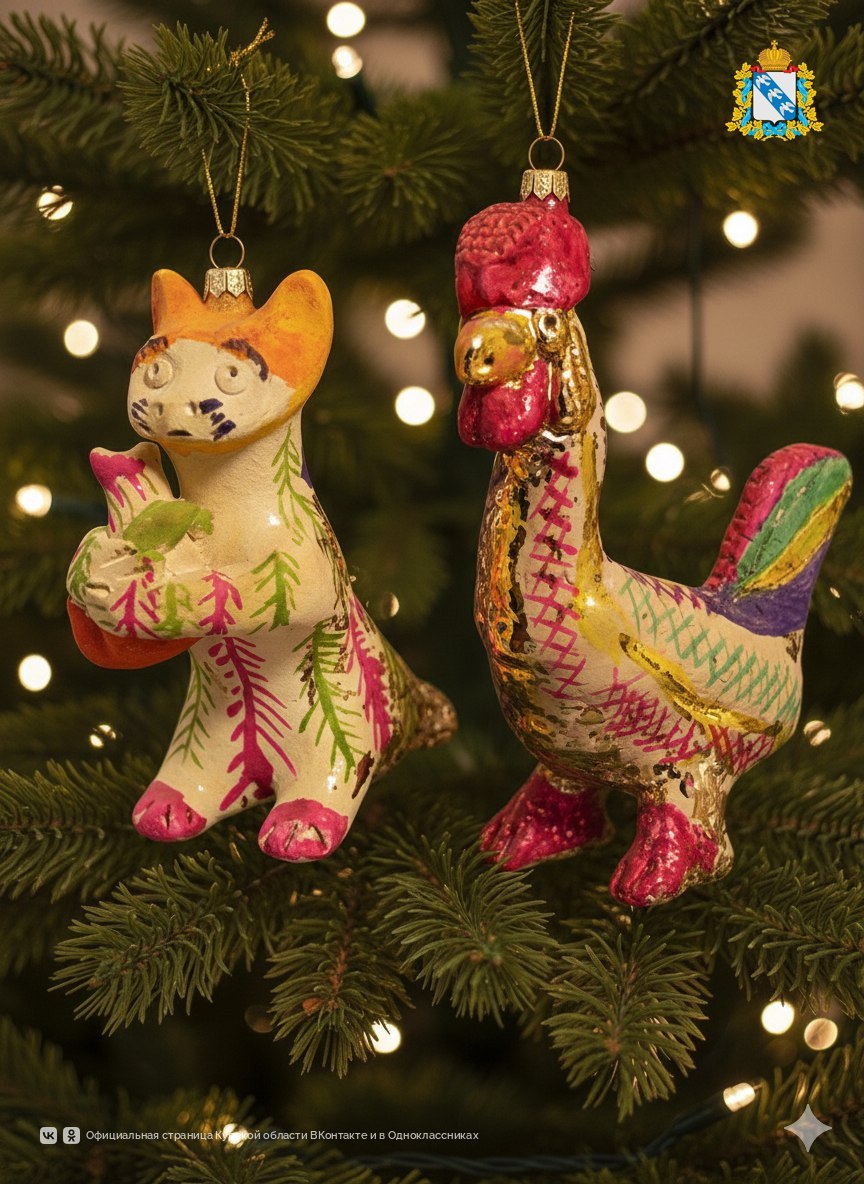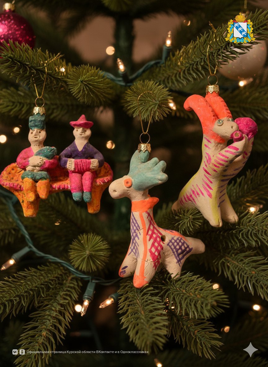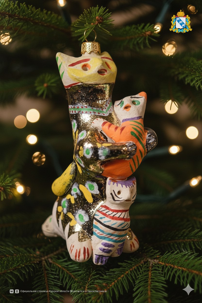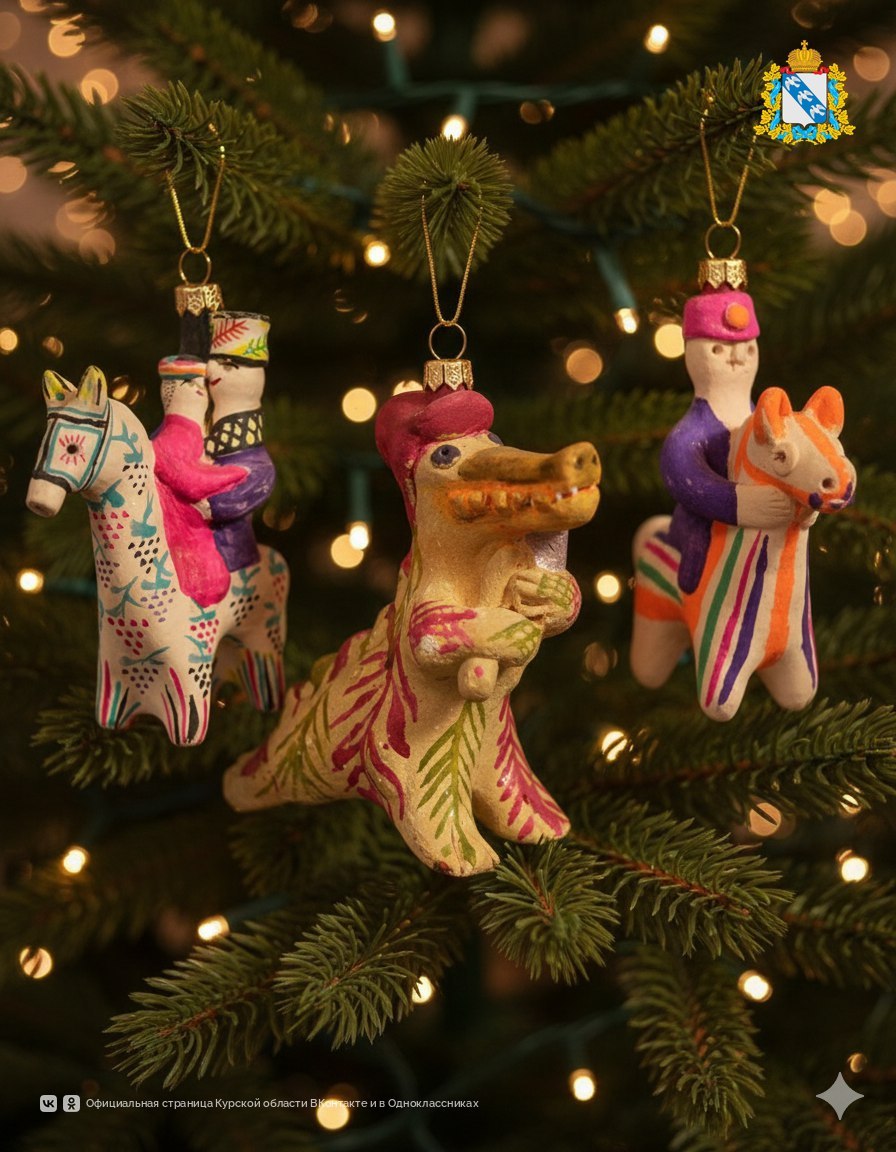 Минутка елочной милоты. Кожлянские игрушки курских мастериц Ольги Дериглазовой, Ульяны и Валентины Ковкиных с помощью нейросети мы превратили в елочные украшения.