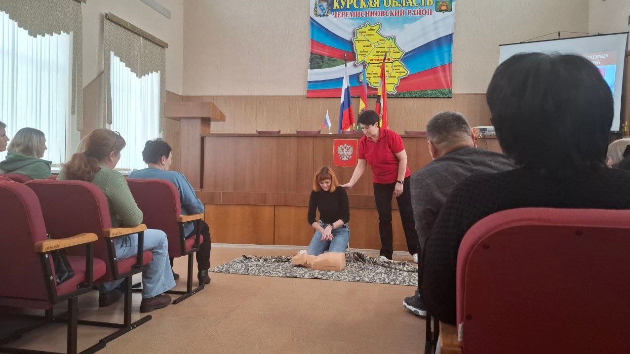 В Администрации Черемисиновского района состоялось мероприятие по отработке навыков оказания первой помощи пострадавшим в условиях чрезвычайной ситуации, в котором приняли участие работники культуры и образования.