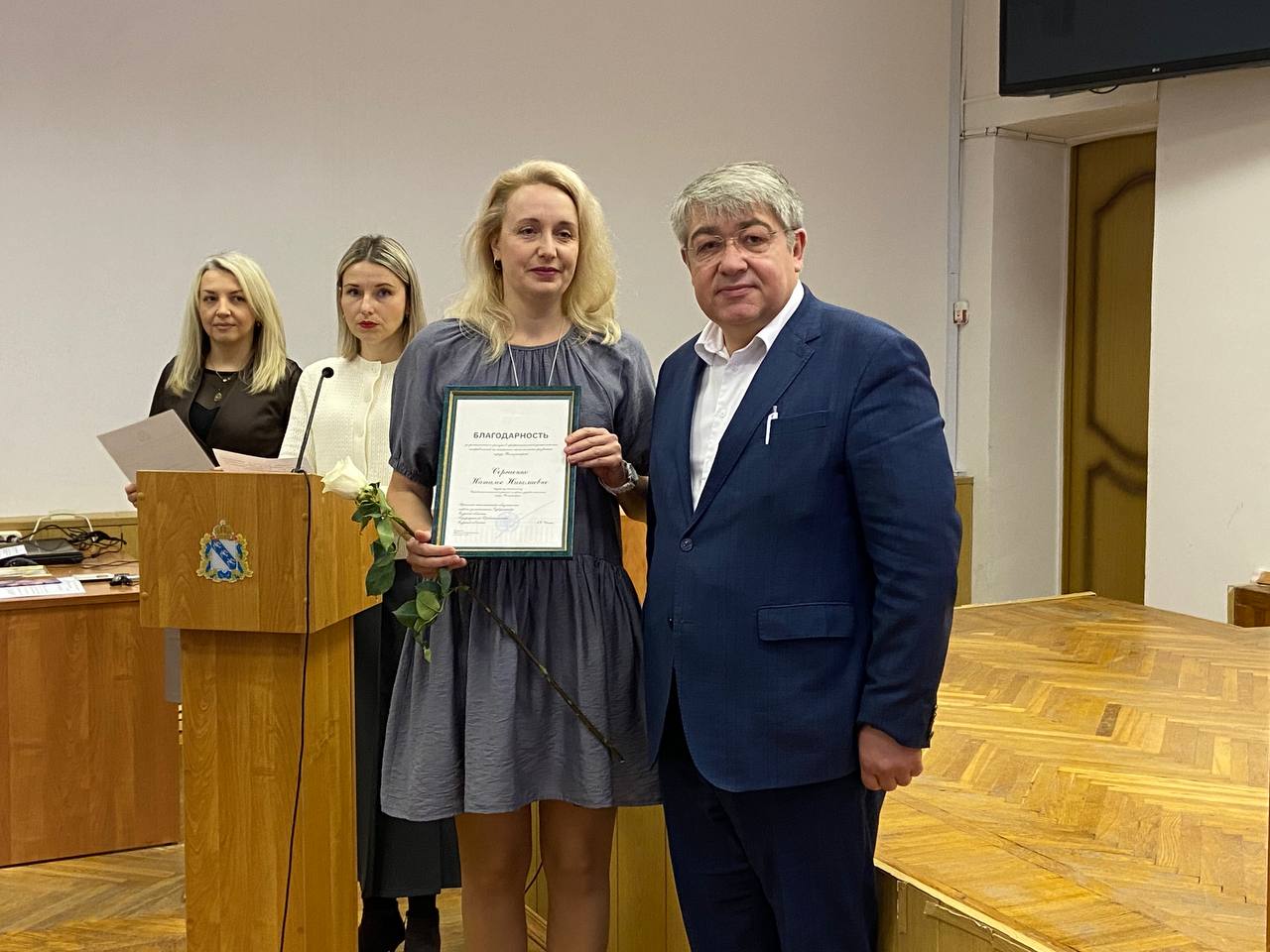 Благодарностью Правительства Курской области за достижения и заслуги в профессиональной деятельности, направленной на социально-экономическое развитие города Железногорска, награждена Наталья Сергиенко - ведущий специалист управления социальной защиты и охраны здоровья населения города Железногорска.