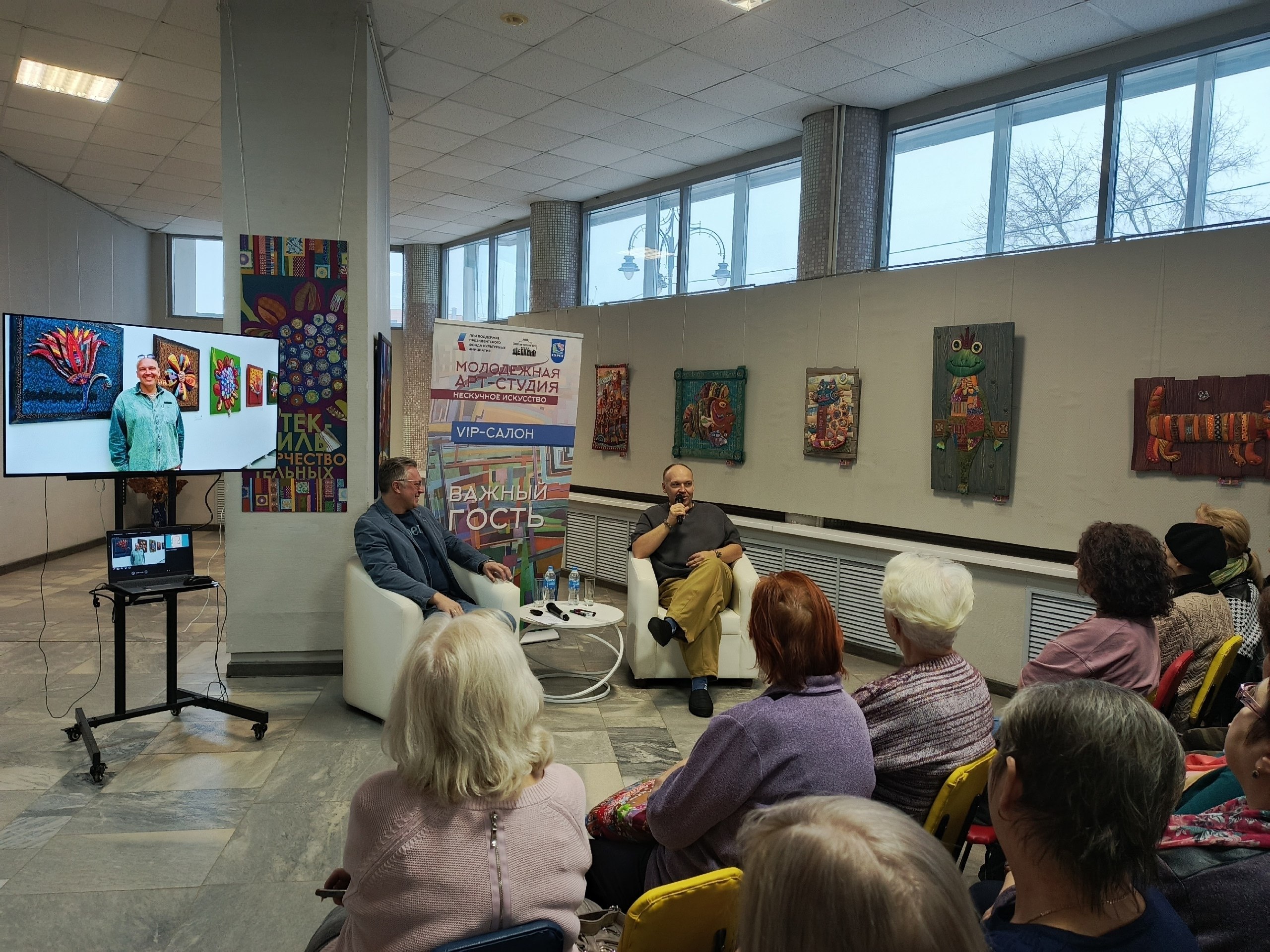 Участники проекта «Курское долголетие» г. Курска посетили творческую встречу с Владимиром Анатольевичем Тельных –художником, дизайнером и декоратором, которая прошла в ВЫСТАВОЧНОМ ЗАЛЕ им. К. МАЛЕВИЧА.