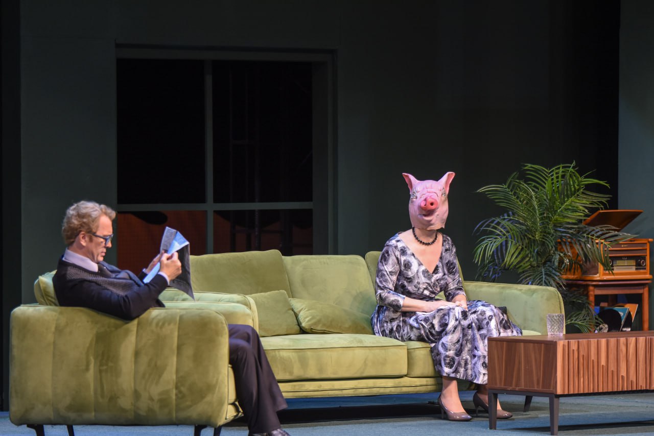 В драмтеатре только что завершился спектакль «Кто боится Вирджинии Вулф?» с Евгением Мироновым и Агриппиной Стекловой в главных ролях. В течение 2,5 часов зрители следили за непростыми семейными отношениями главных героев.