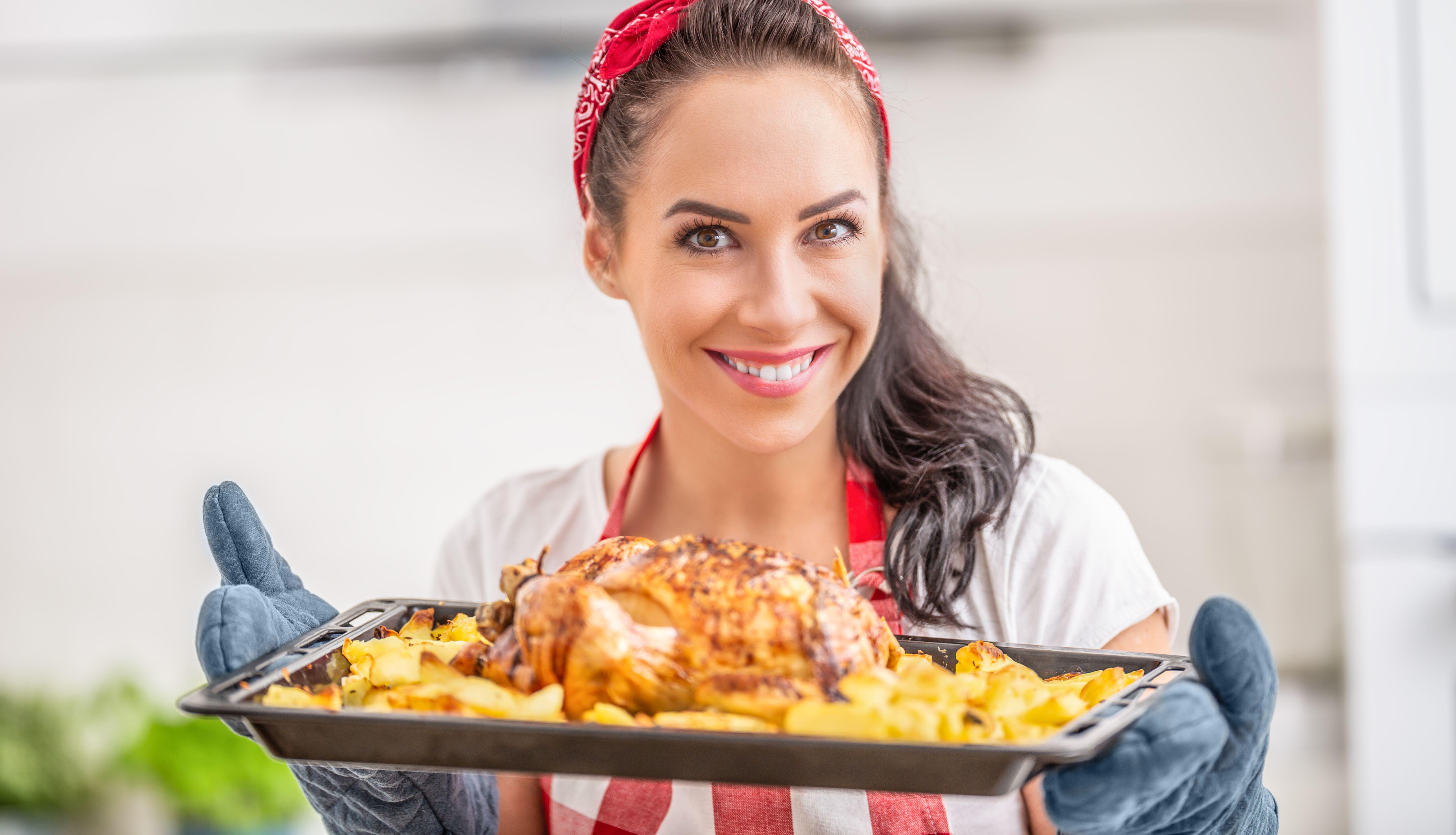 На запах запеченного жареного мяса с картошечкой сбегается вся семья. Поужинав с домашними, хозяйка иногда оставляет противень с едой в духовке. Некоторые даже делают так специально.
