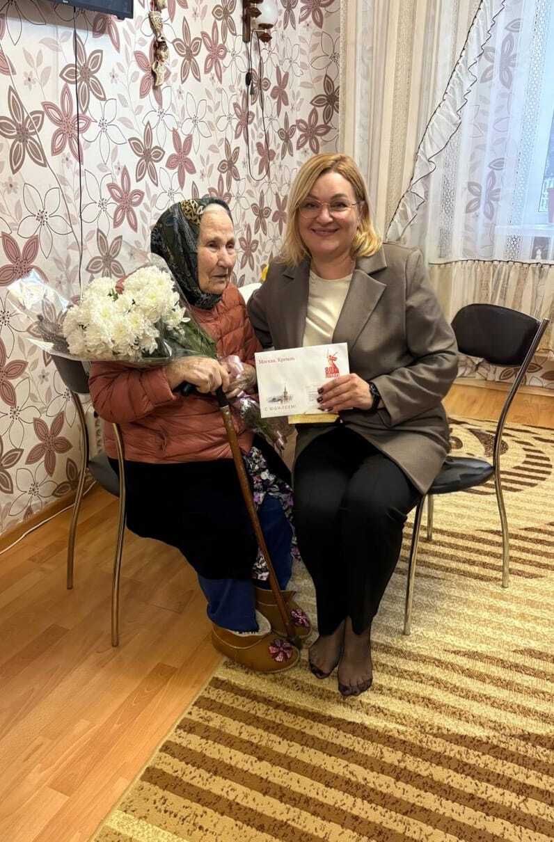 Глава посёлка Прямицыно Ольга Стародубцева лично поздравила юбиляршу, выразив глубокое уважение и признательность за её многолетний труд и неоценимый вклад в развитие родного края.