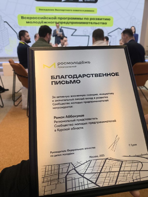 Также состоялась стратегическая сессия Сообщества молодых предпринимателей, в рамках которой региональный представитель Курской области Роман Аббакумов был отмечен благодарственным письмом руководителя Федерального агентства по делам молодежи.