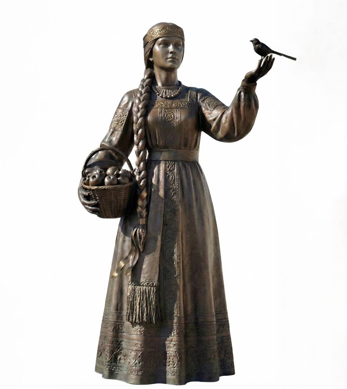 — В русском традиционном костюме кокошник — это праздничный головной убор, который носили замужние женщины, пряча за него волосы. В нашем случае девушка молодая и с косой. Исторически свободные дамы украшали головы лентами, венцами и повязками, — напомнил Александр Евсеевич.