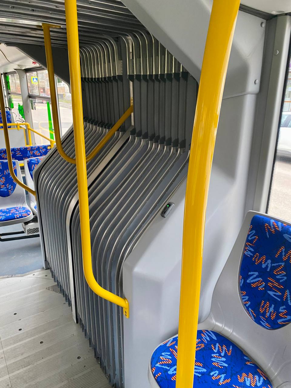 Новая машина вмещает до 150 пассажиров, из них 44 - на сидячих местах. В троллейбусе установлен кондиционер, камеры видеонаблюдения и предусмотрено место для маломобильных граждан. Кроме того, он может проехать до 30 километров без подключения к контактной сети.