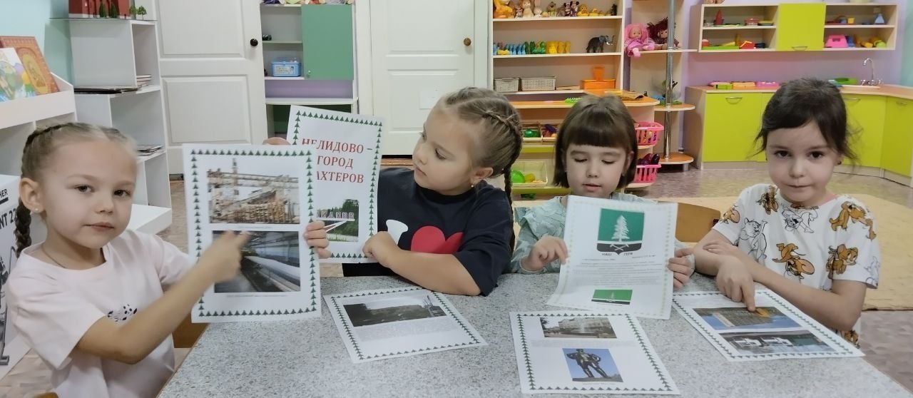 Это город шахтеров, в котором добывали каменный уголь. Дети узнали, что профессия шахтер — сложная, и овладеть ей может не каждый. Также им рассказали, что уголь используется для отопления помещений, в изготовлении косметики, шин, игрушек, стекла, в производстве техники и даже лекарств.