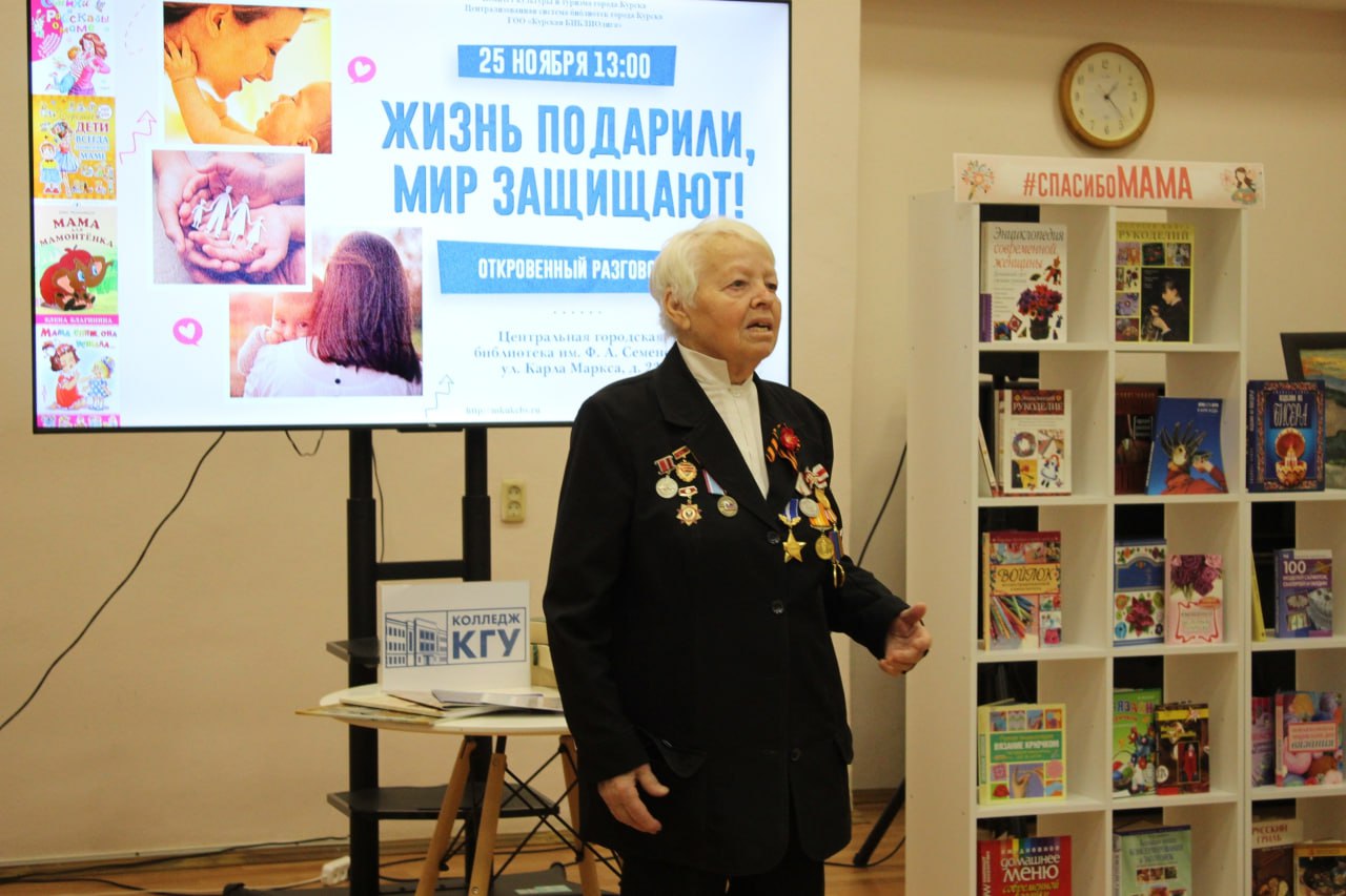 «Жизнь подарили, мир защищают!» – так называлась встреча в формате «откровенный разговор», приуроченная к Дню матери и состоявшаяся в Центральной городской библиотеке имени Ф.А. Семёнова при поддержке комитета культуры и туризма города Курска.
