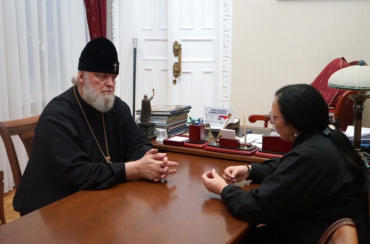В Курском епархиальном управлении митрополит Курский и Рыльский Герман встретился с руководителем филиала фонда «Защитники Отечества» по Курской области Татьяной Банниковой.