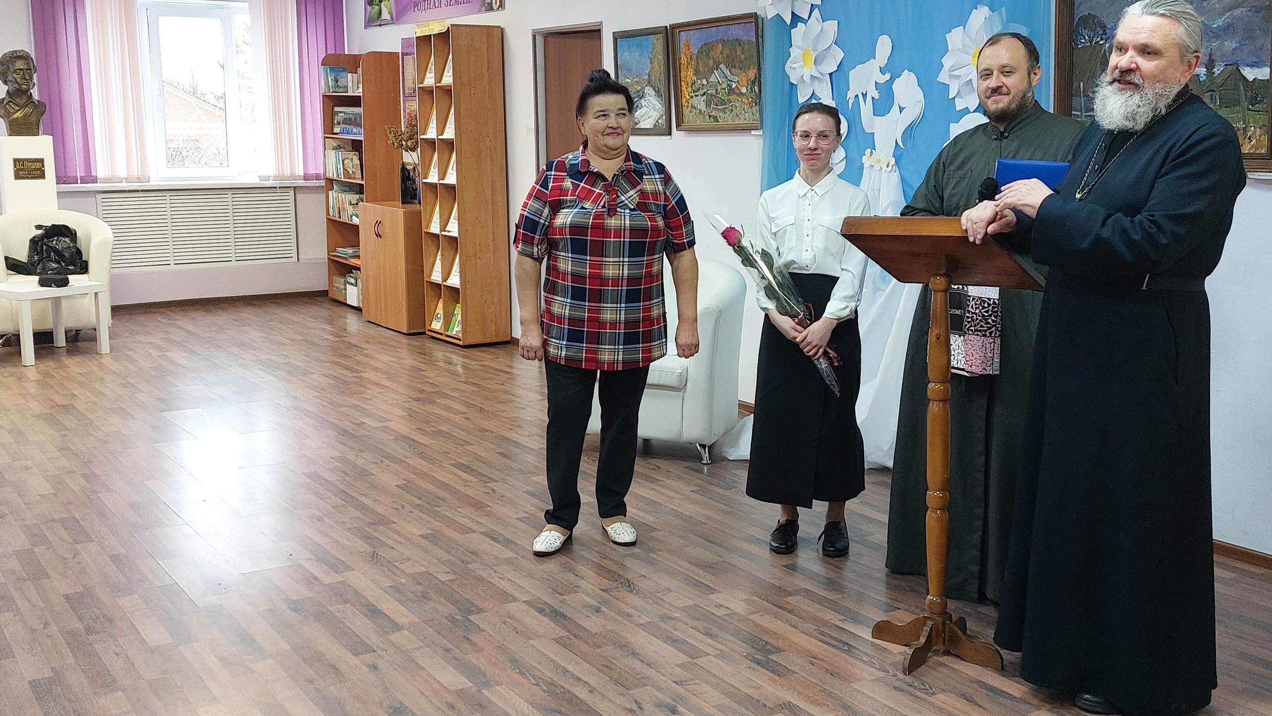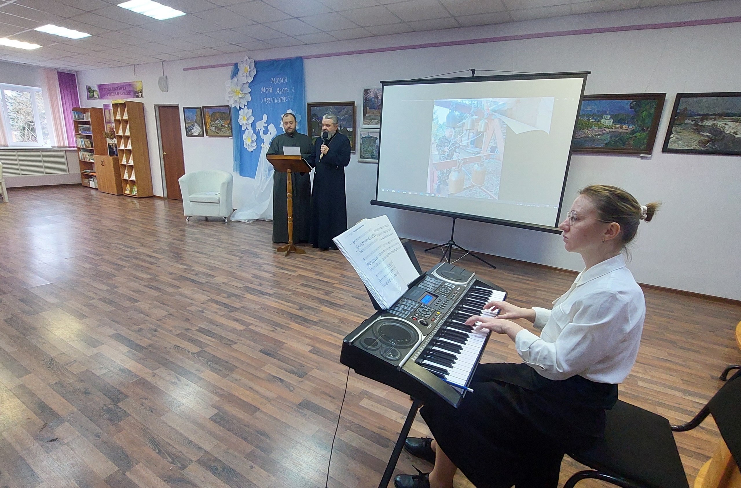 По сложившейся традиции в читальном зале библиотеки для слушателей университета пожилого человека «Золотой возраст» состоялась православная встреча «Храмов благовест святой» с настоятелем храма Сергия Радонежского, протоиереем Виктором, дьяконом Сергием. На встрече присутствовал протоиерей храма Нерукотворного образа п.Прямицыно отец Александр, который поприветствовал гостей на Октябрьской земле.