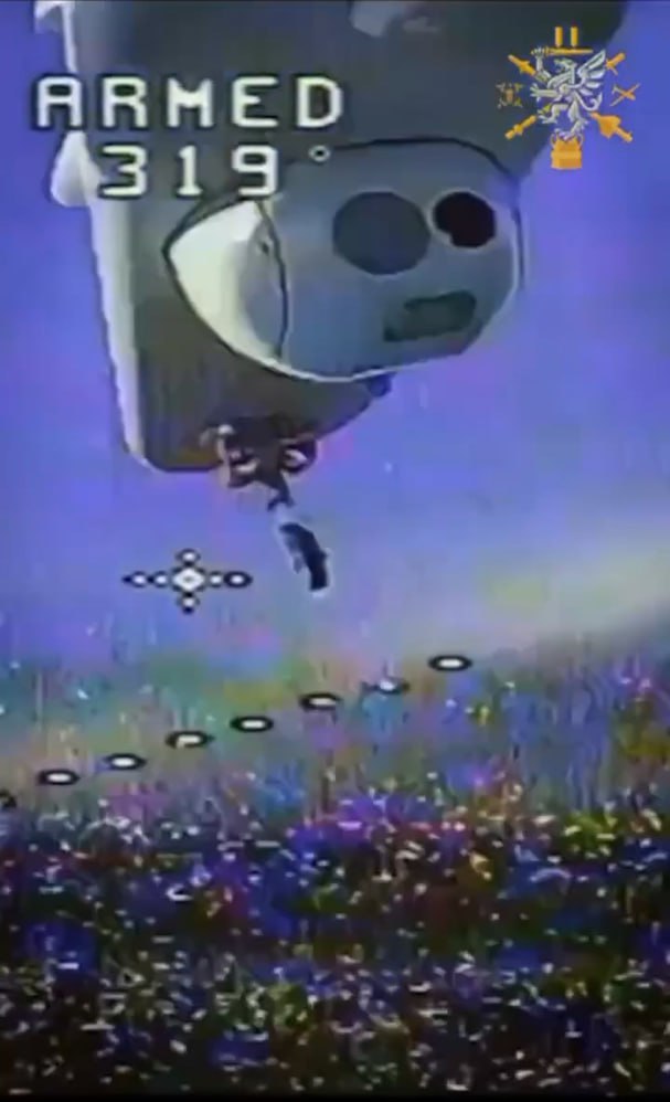 Перехват российского БПЛА "Форпост-РУ" ударом украинского зенитного FPV-дрона, как заявляется, в небе над приграничьем Курской области.