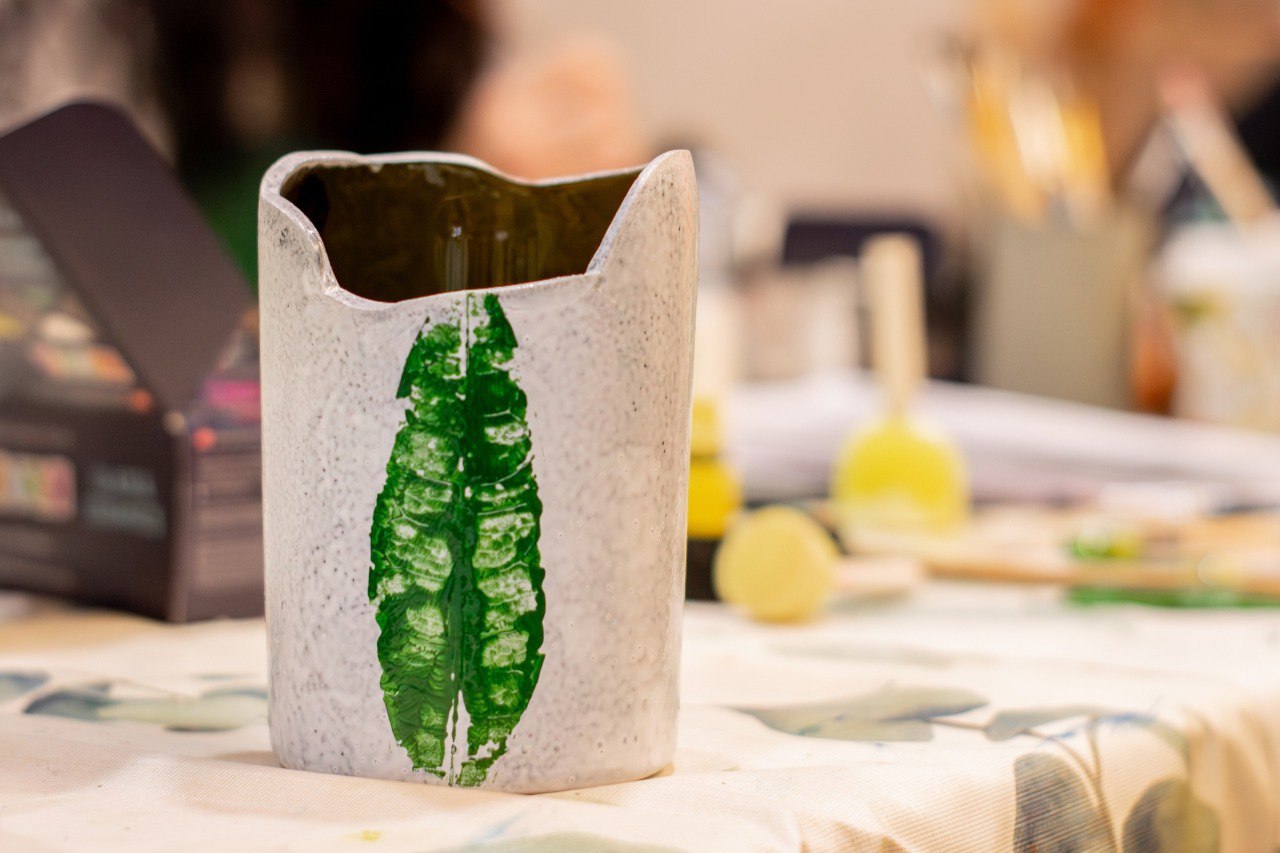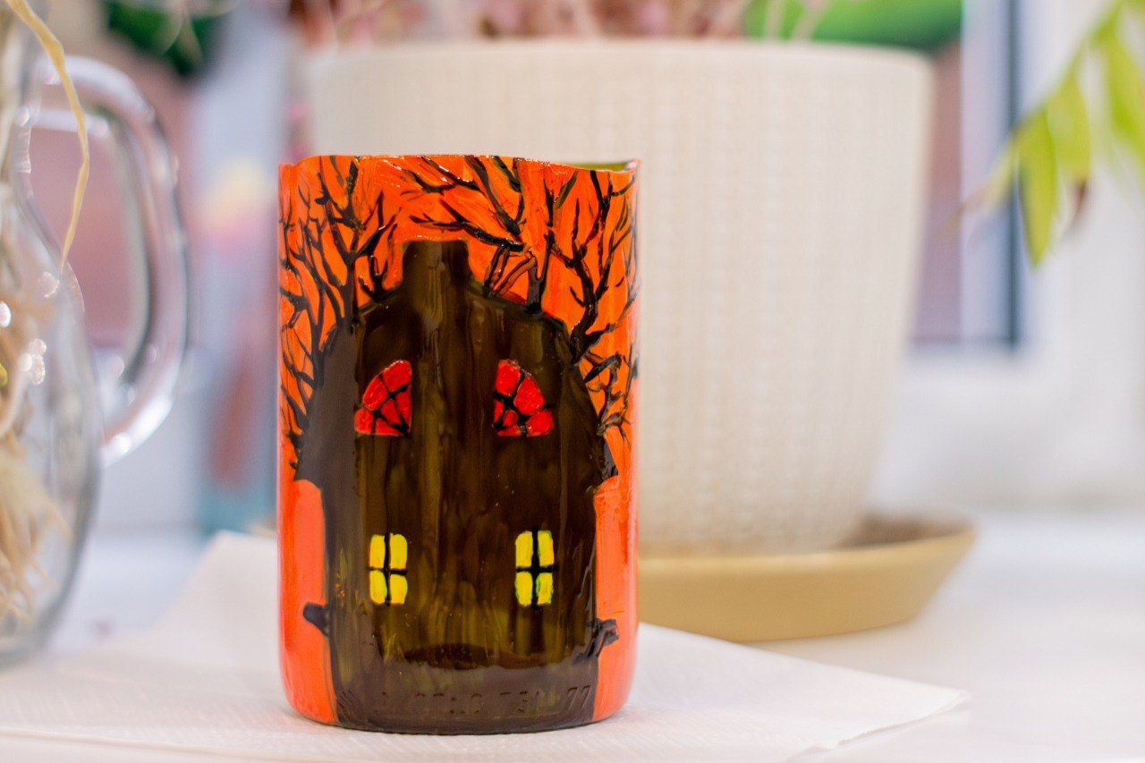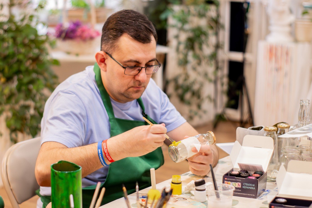 Они трудились над индивидуальными проектами: расписывали обрезанные бутылки под вазы, банки из-под варенья под подсвечники или декоративные светильники. Некоторые успели раскрасить даже несколько изделий.