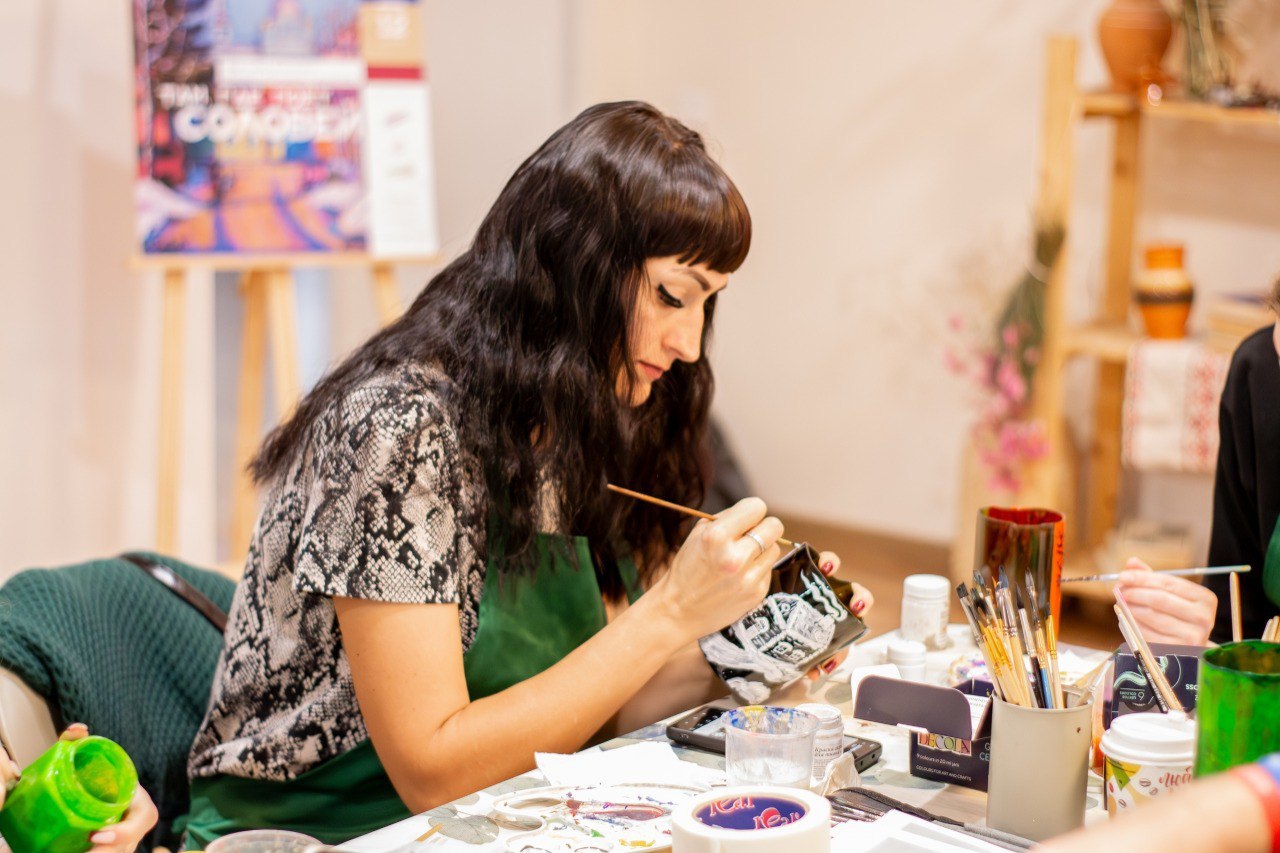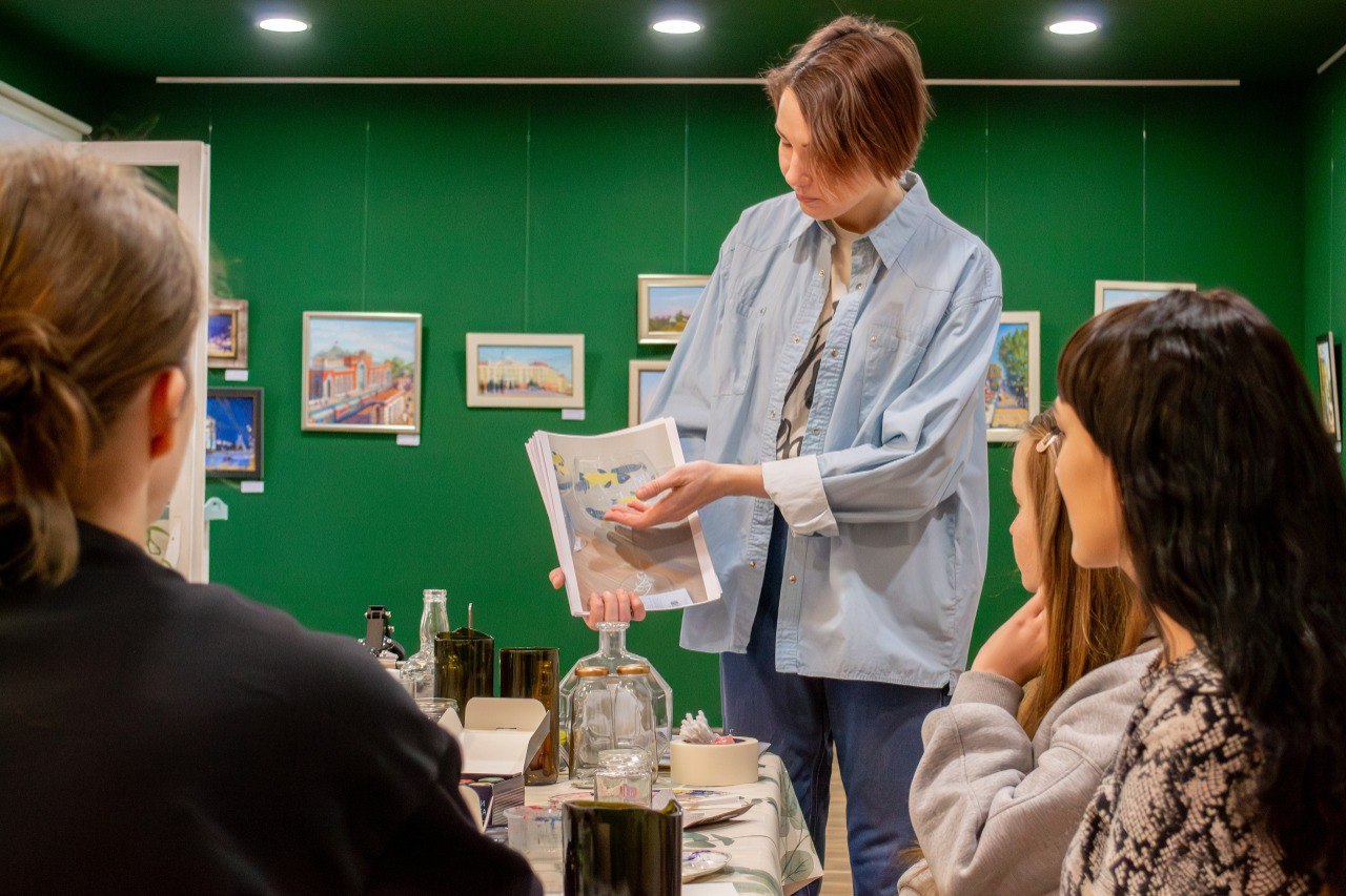 На очередном арт-воркшопе участники работали со стеклом и акрилом.