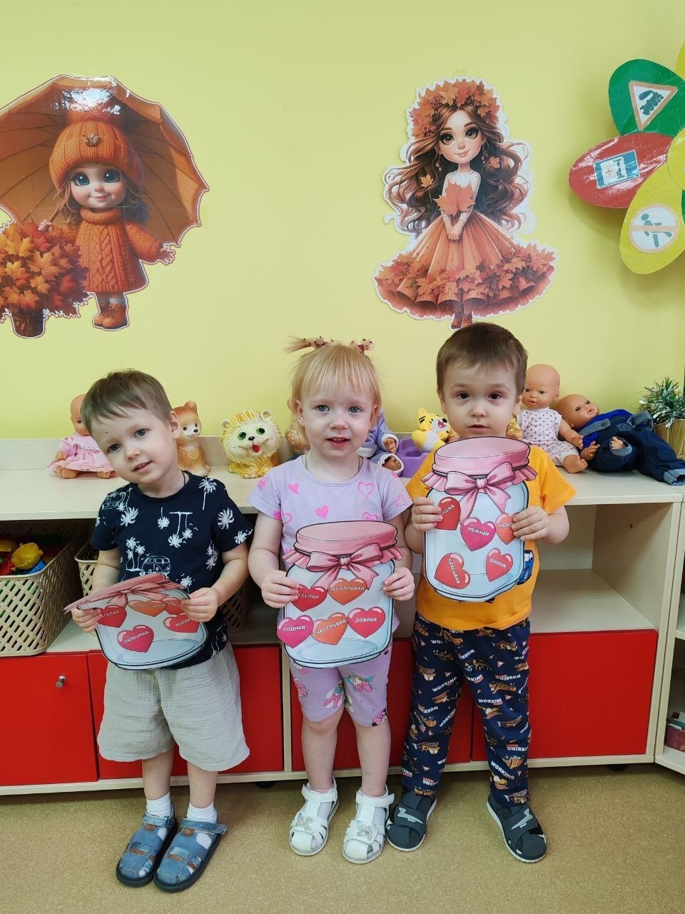 В преддверии праздника "День матери" сотрудники детского сада "Радуга" с ребятами первой младшей группы "Малышарики" приготовили открытку сюрприз для мам "Баночка самых нежных слов"