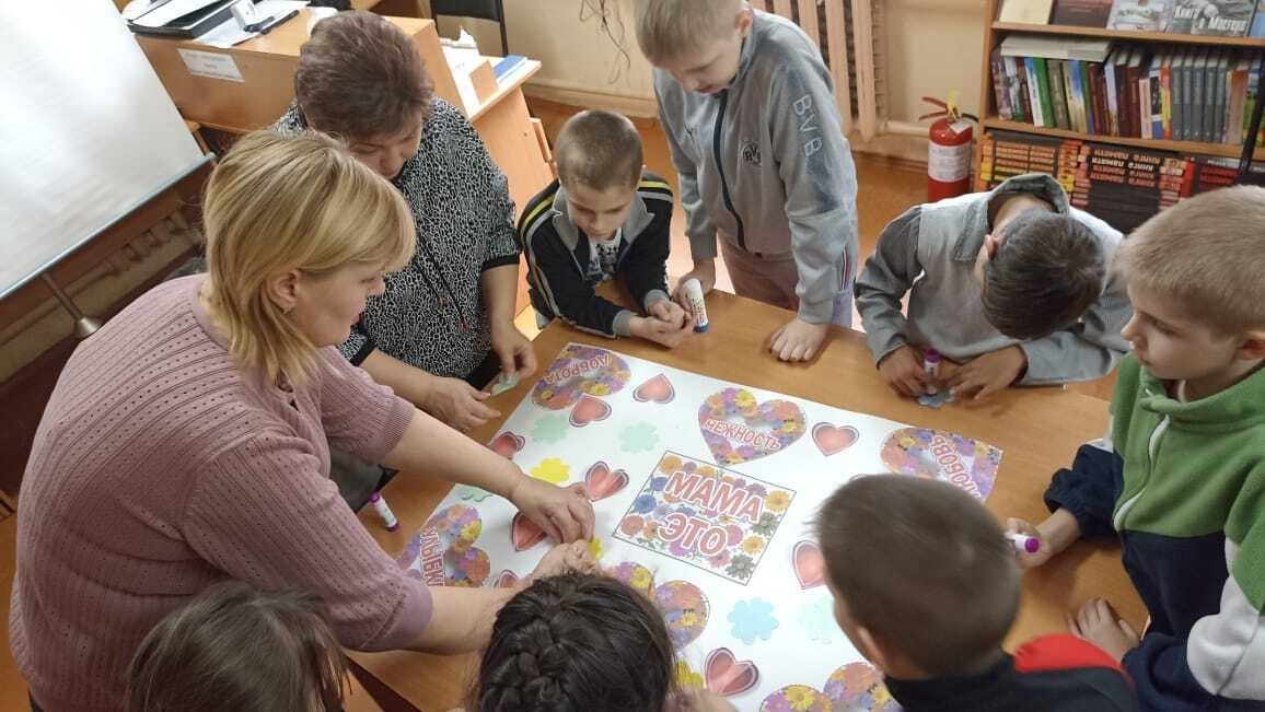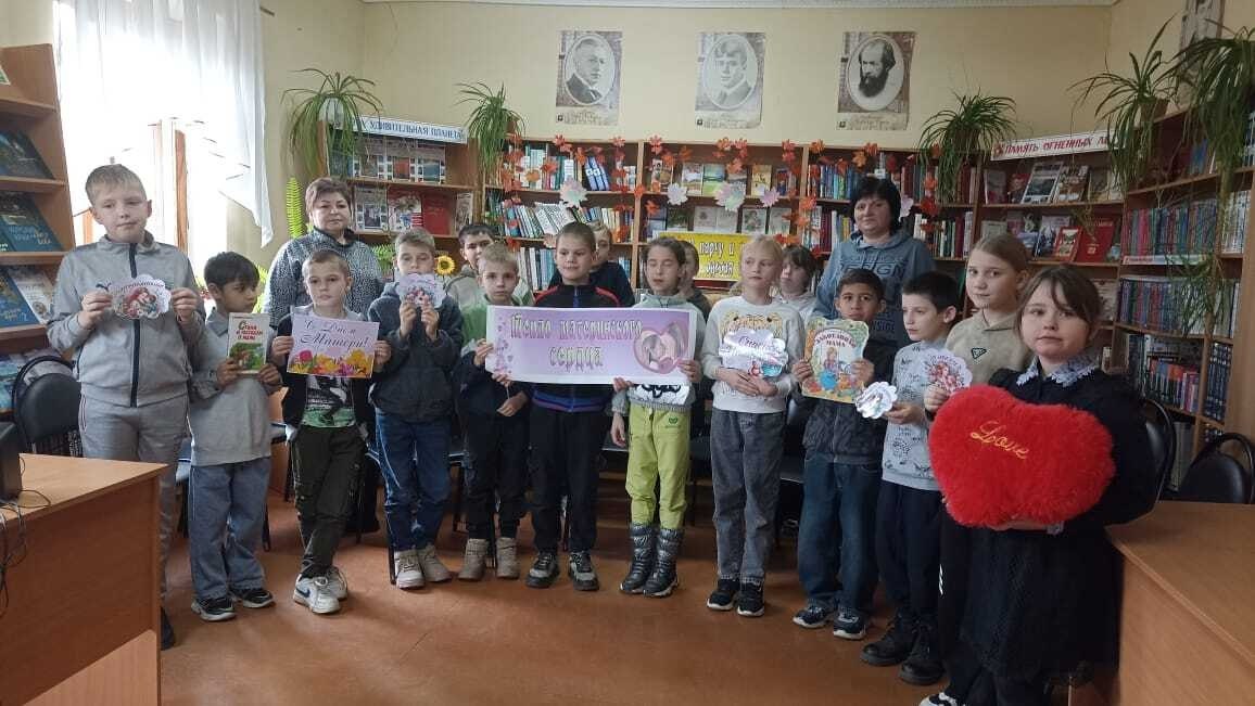 Воспитатели ОКОУ «Верхнелюбажская школа-интернат» вместе с ребятами посетили сельскую библиотеку , где прошло тёплое и душевное мероприятие «Тепло материнского сердца» .