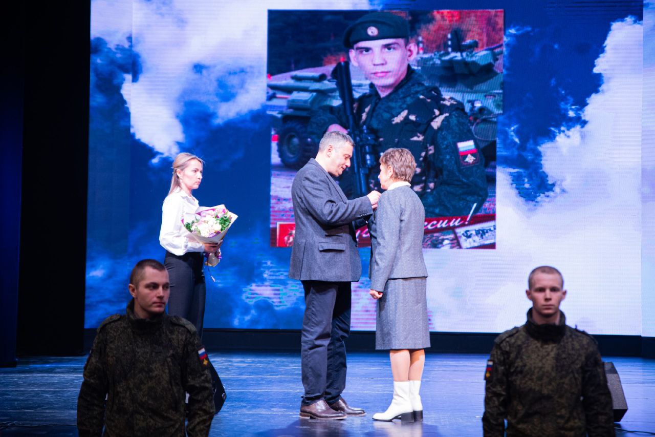 Александр Хинштейн наградил медалью «Мать героя» матерей участников СВО, медалью «За заслуги перед Курской областью» – сотрудников филиала фонда «Защитники Отечества».