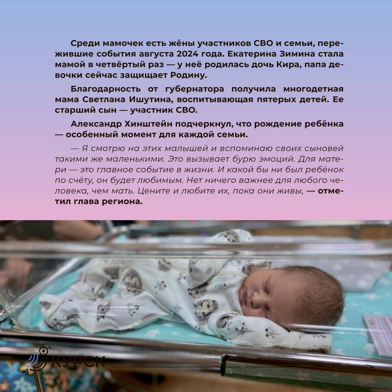 Накануне Дня матери губернатор Курской области Александр Хинштейн наградил региональными медалями «Мать героя» матерей 14 погибших участников СВО.– Здесь в этом зале сегодня собрались замечательные женщины, чьи сыновья пошли защищать Родину. –...