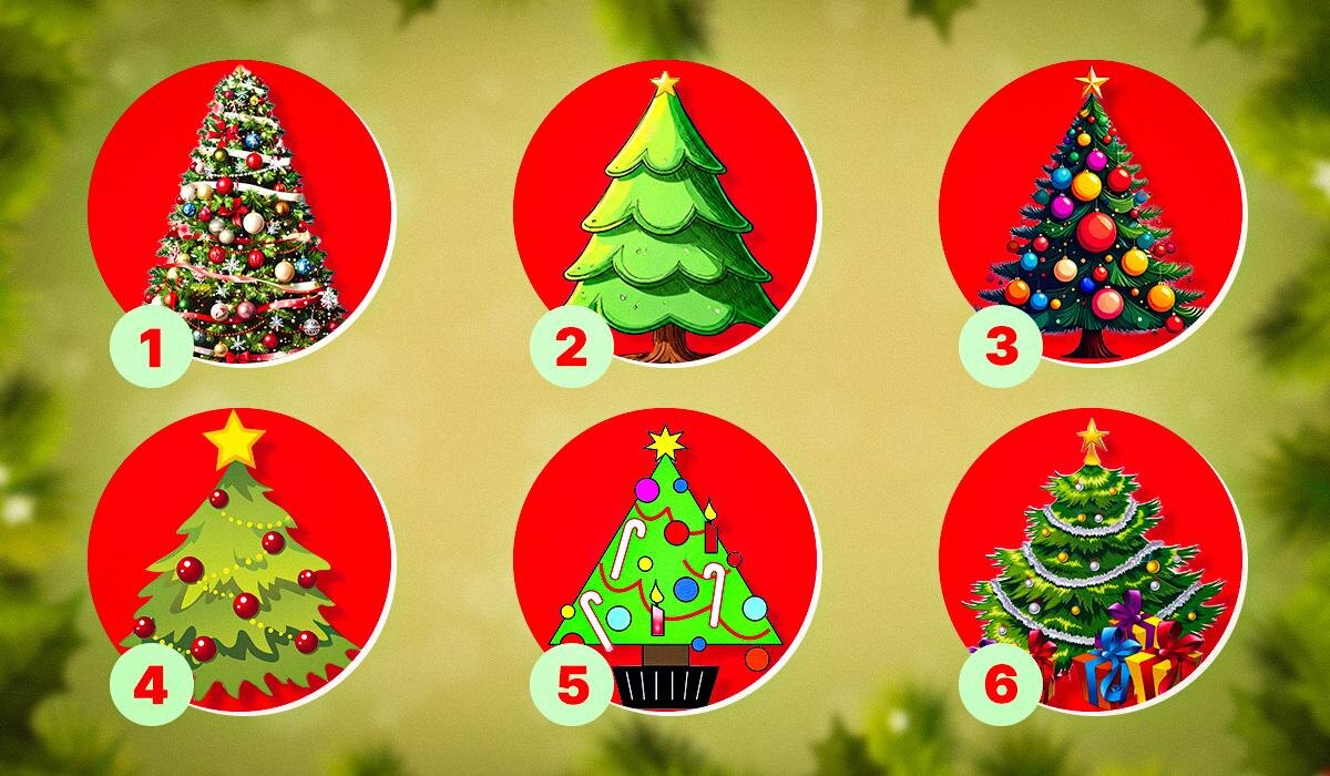 В этой связи психологи предлагают интересный тест, который поможет разобраться в своем внутреннем мире. Выбор новогодней елки станет ключом к пониманию ваших черт характера и стремлений. Просто посмотрите на каждую из предложенных елок и выберите ту, что больше всего привлекает внимание.