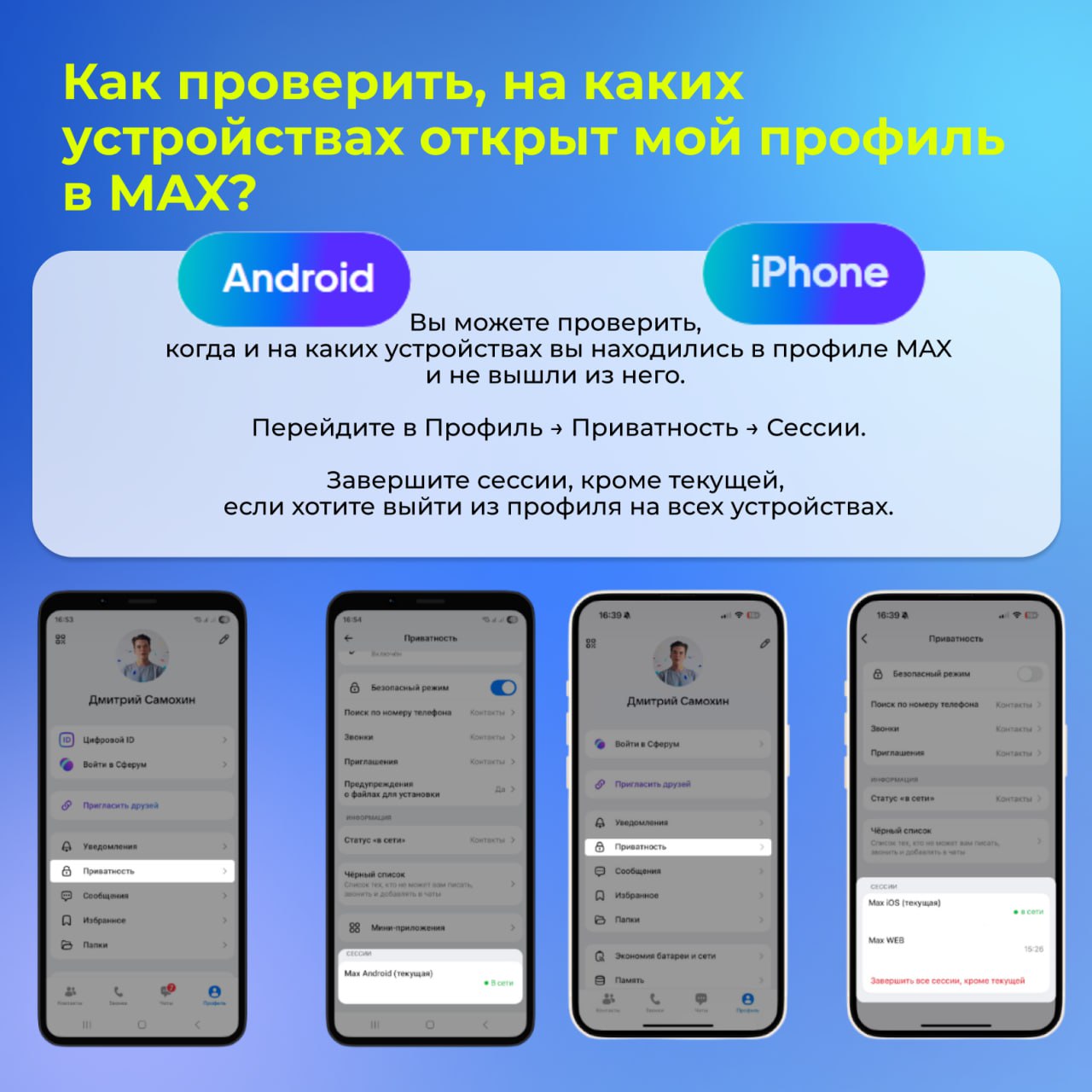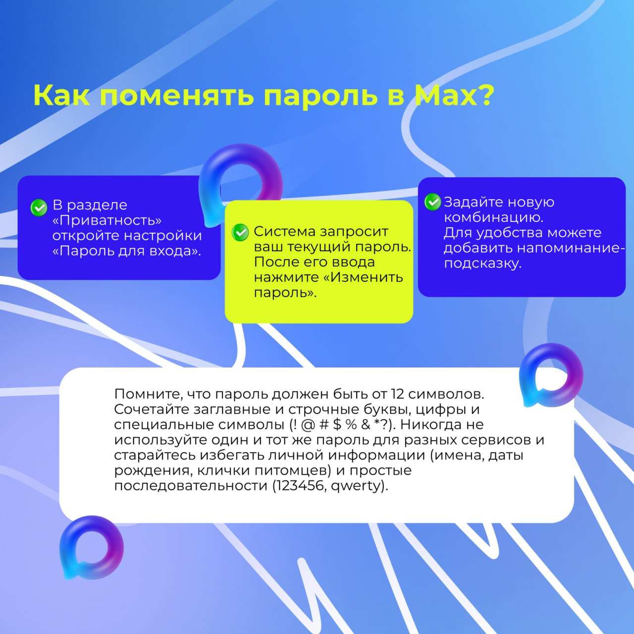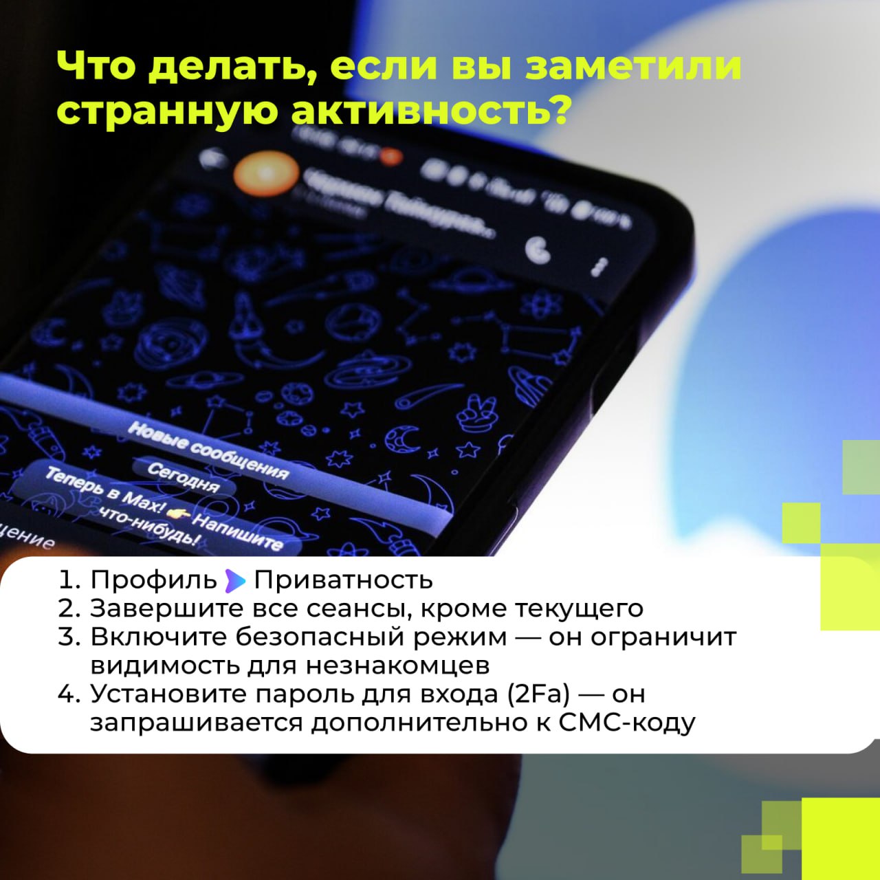 В современном цифровом мире защита вашего аккаунта является приоритетом. Узнать больше о мерах защиты учетной записи в MAХ и о том, как избежать нежелательных ситуаций — можно в карточках.