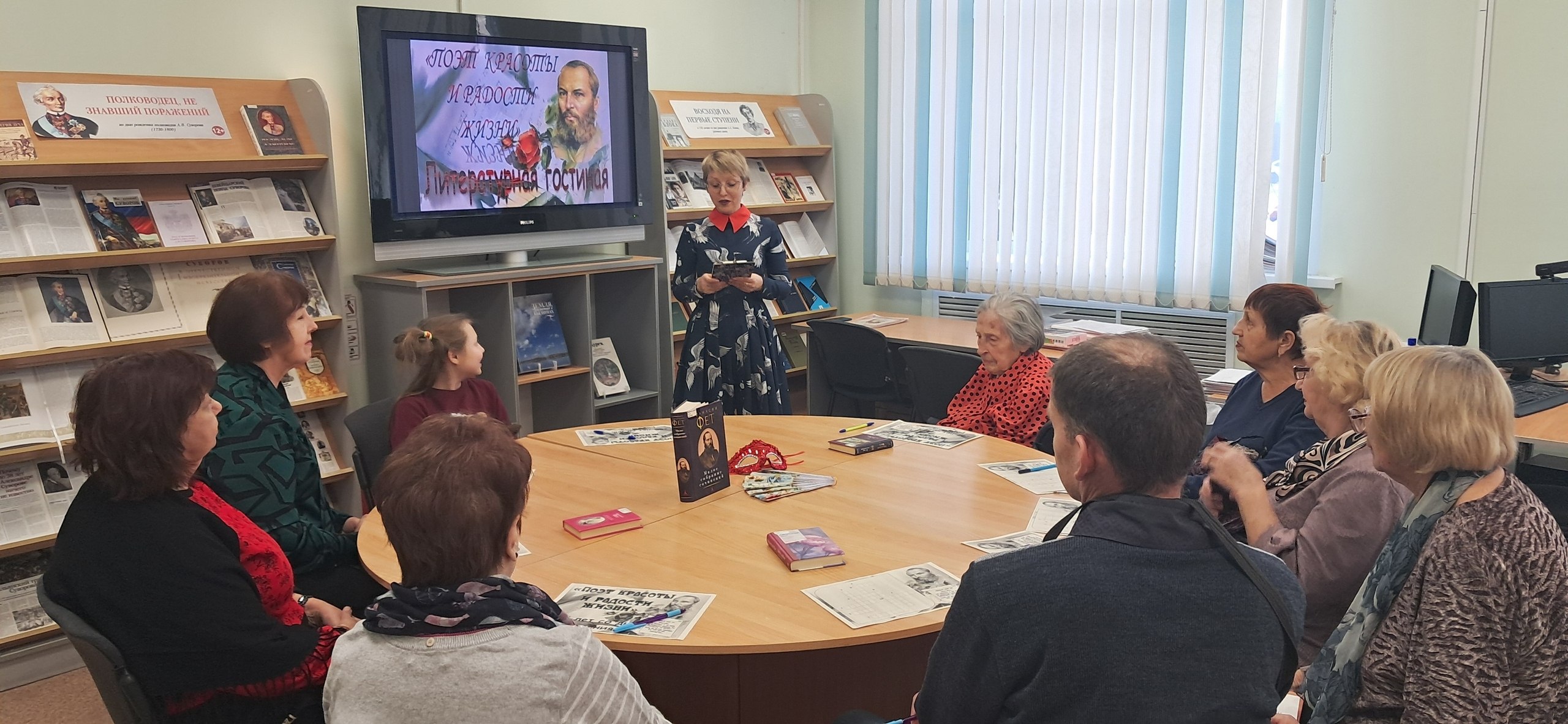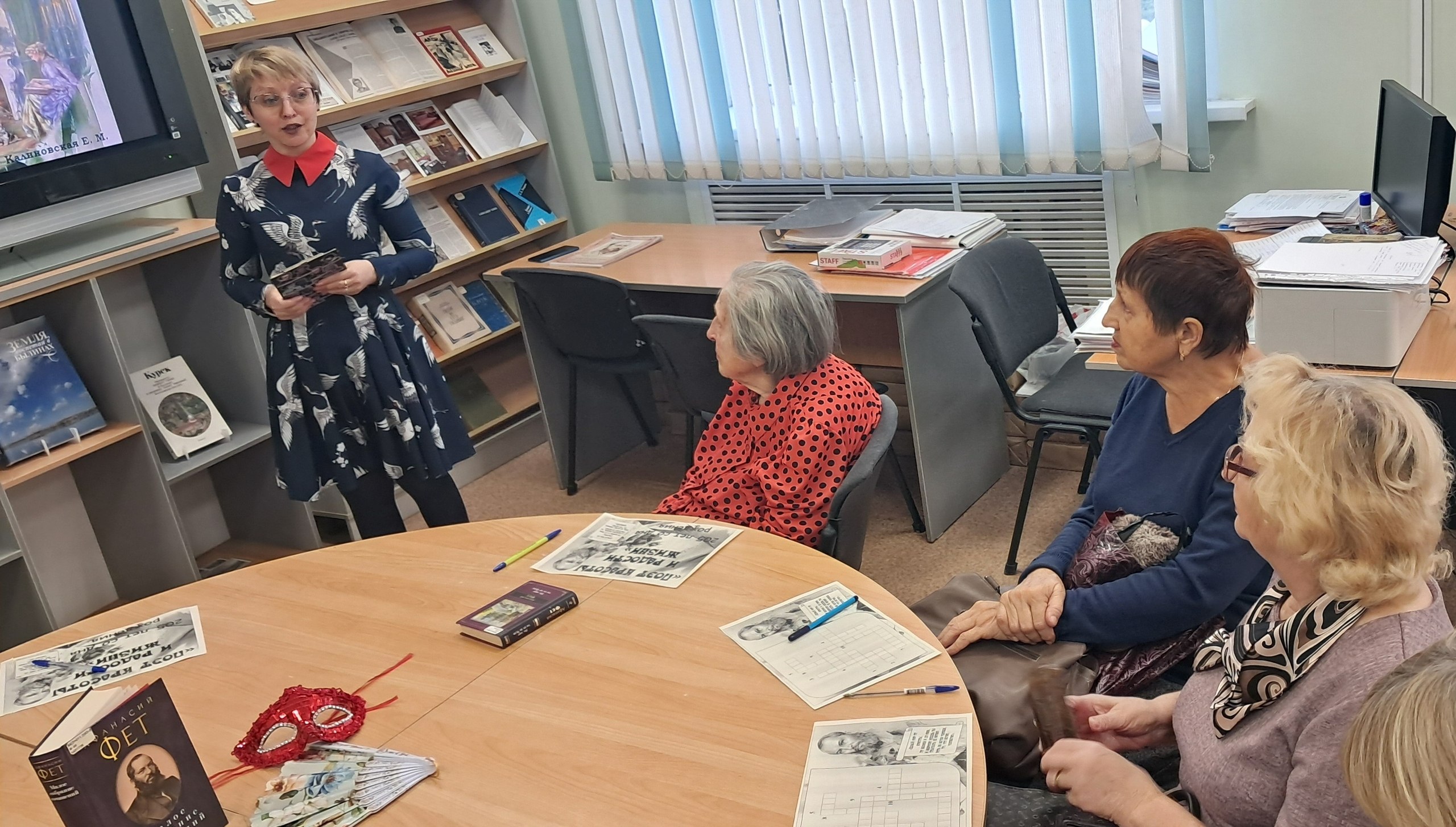 Участники проекта «Курское долголетие побывали на заседании Клуба любителей чтения в библиотеке им. Н.Н. Асеева. Литературная гостиная «Поэт красоты и радости жизни», была посвящена известному русскому поэту, нашему земляку Афанасию Фету.