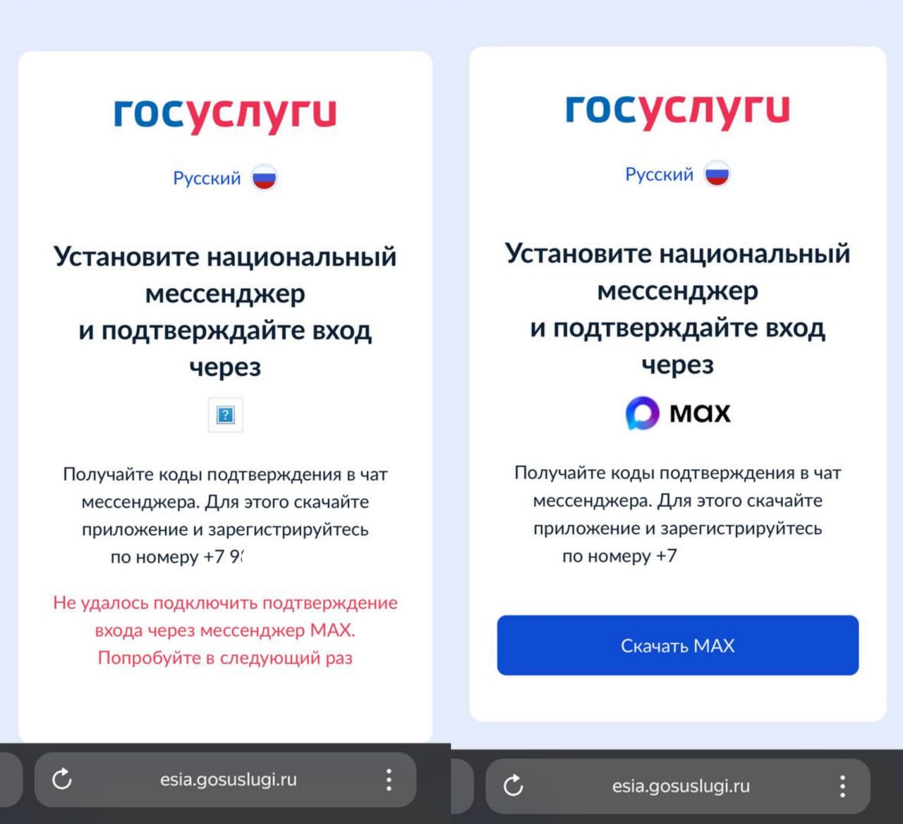 Пользователи Android столкнулись с невозможностью войти в мобильную версию Госуслуг без установленного мессенджера Max: даже если у пользователя включена двухфакторная авторизация через смс, портал отключает кнопку «пропустить», запускающую верификацию через Max. При заходе в веб-версию Госуслуг пока есть альтернативы, также сообщается, что авторизацию через мессенджер можно отключить, сменив подтверждение по смс на вход по одноразовому коду.
