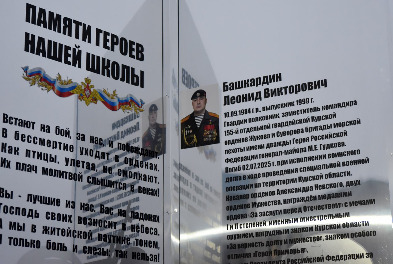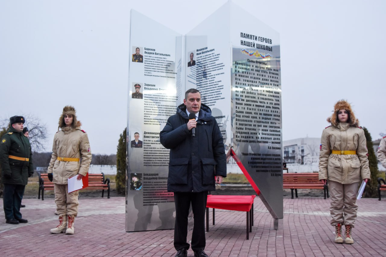 На территории лицея-интерната поселка имени Маршала Жукова открылся сквер со стелой, посвященной выпускникам-военным, погибшим в ходе специальной военной операции.