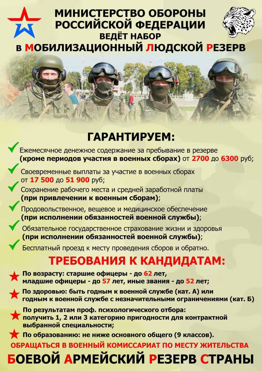 Министерство обороны РФ ведет набор в мобилизационный людской резерв
