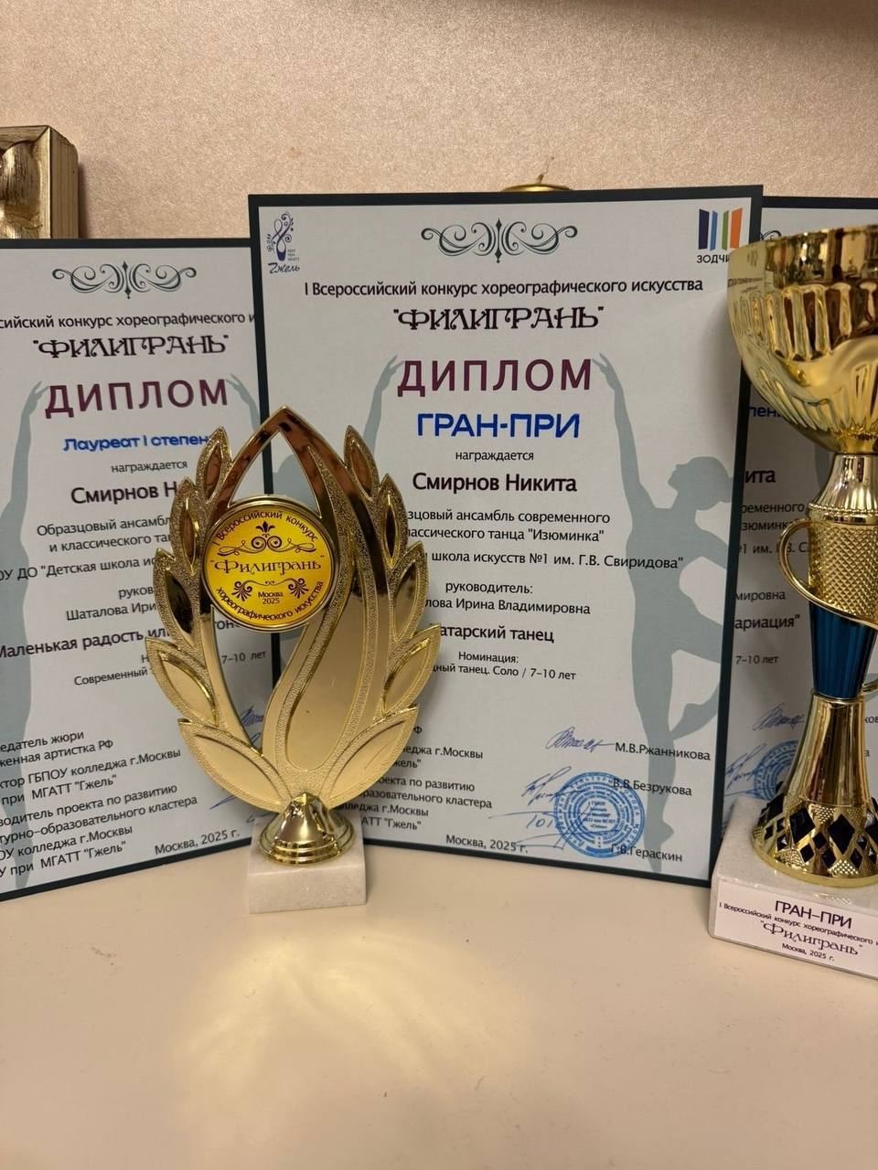 Никита Смирнов, солист ансамбля «Изюминка», завоевал Гран-при в номинации «Народно-сценический танец» и стал лауреатом I степени в номинации «Современный танец».