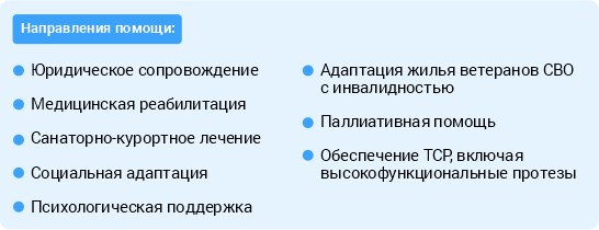 Государственный фонд «Защитники Отечества» обеспечивает комплексное сопровождение ветеранов СВО и членов семей погибших (умерших) бойцов в целях предоставления мер поддержки, оказания социальных и иных услуг, помощи по принципу «одного окна».