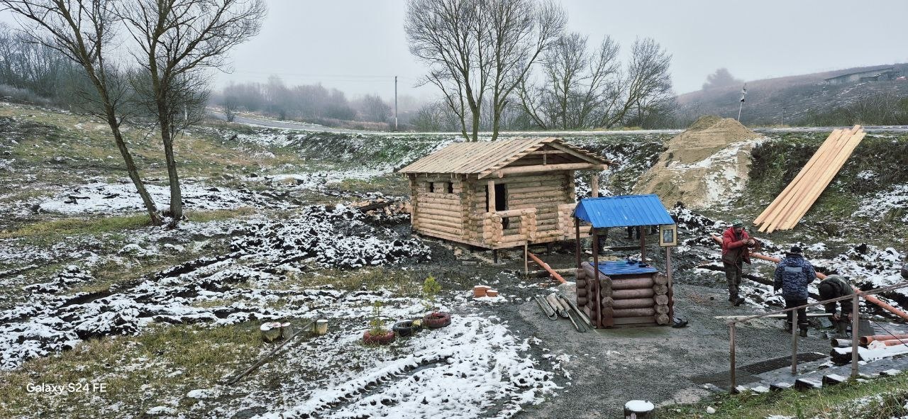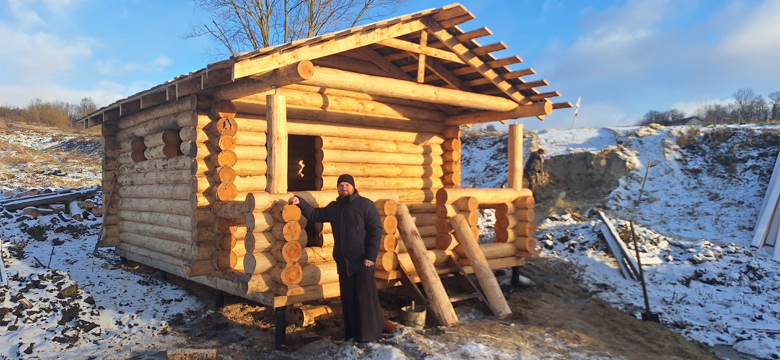 У храма Космы и Дамиана в с. Любач установили сруб над купелью.