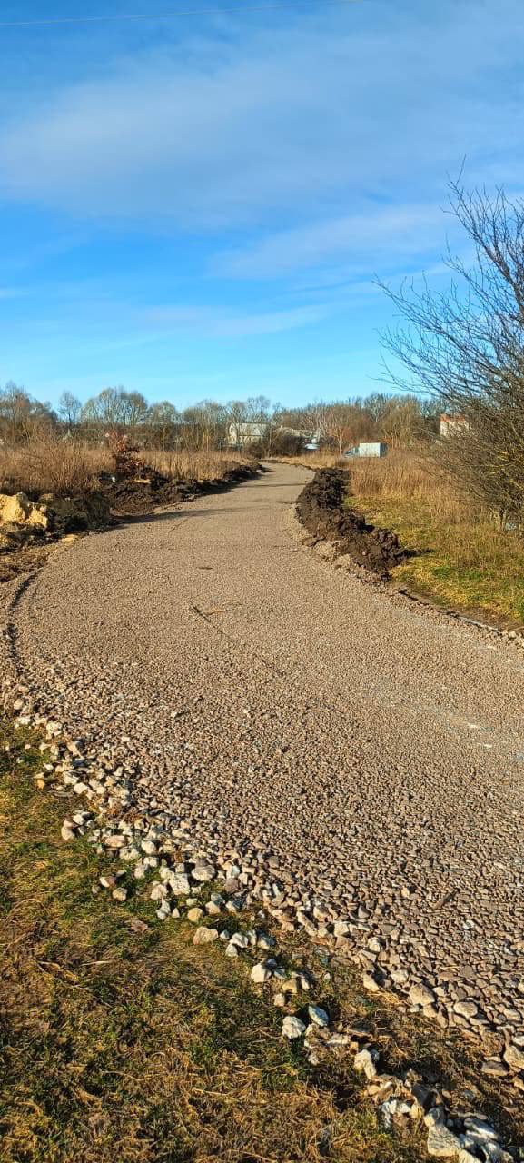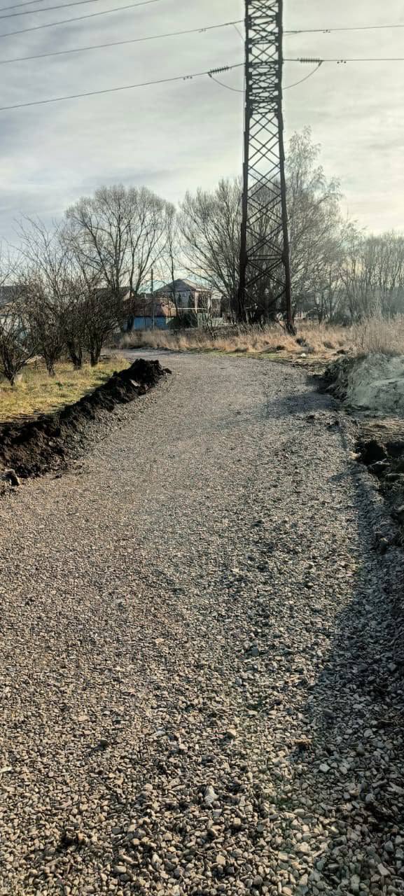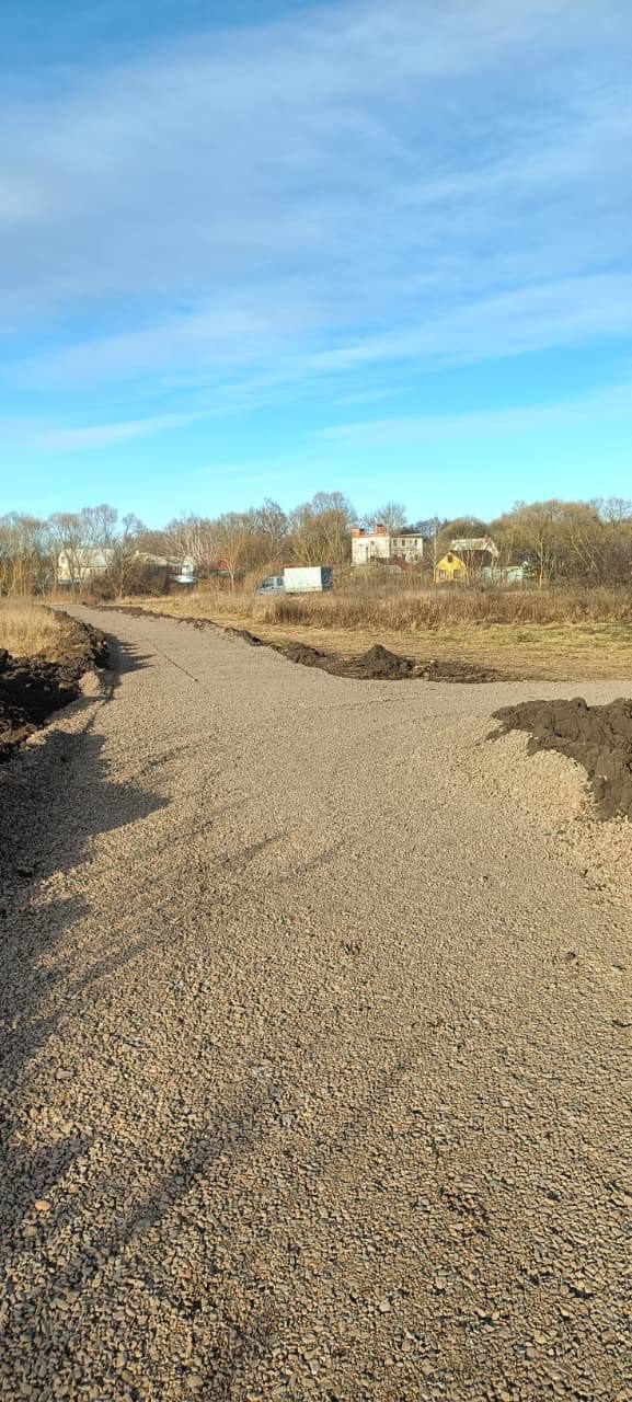 В эти выходные работы были завершены. Песком и щебнем отсыпали более 170 метров проезжей части — от дома № 12 до дома № 18, где ранее была лишь накатанная грунтовая дорога. Кроме того, фрезератом просыпали около 200 метров участка по 2-му Школьному проезду, соединяющему улицу Луговую с улицей Черняховского.