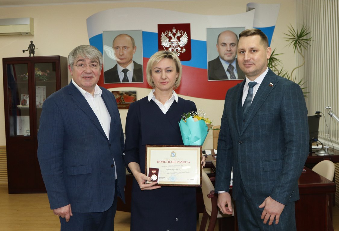 Начальник управления социальной защиты и охраны здоровья населения города Железногорска Лариса Кравченко удостоена Почетной грамоты Курской областной Думы.
