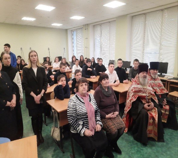 Председатель Общественного совета Фурманова Л.В. рассказала учащимся о подвиге российского летчика Романа Филиппова и боевом пути Дениса Юрьевича Чернавина, военного летчика, Героя России, боевого командира и друга ее сына Василия Михайловича Фурманова. О значении духовности и веры в жизни Героев сегодняшних и былых времен рассказал Благочинный Солнцевского церковного округа, протоиерей Василий Жданов. В целом, мероприятие получилось и поучительным, и трогательным одновременно.