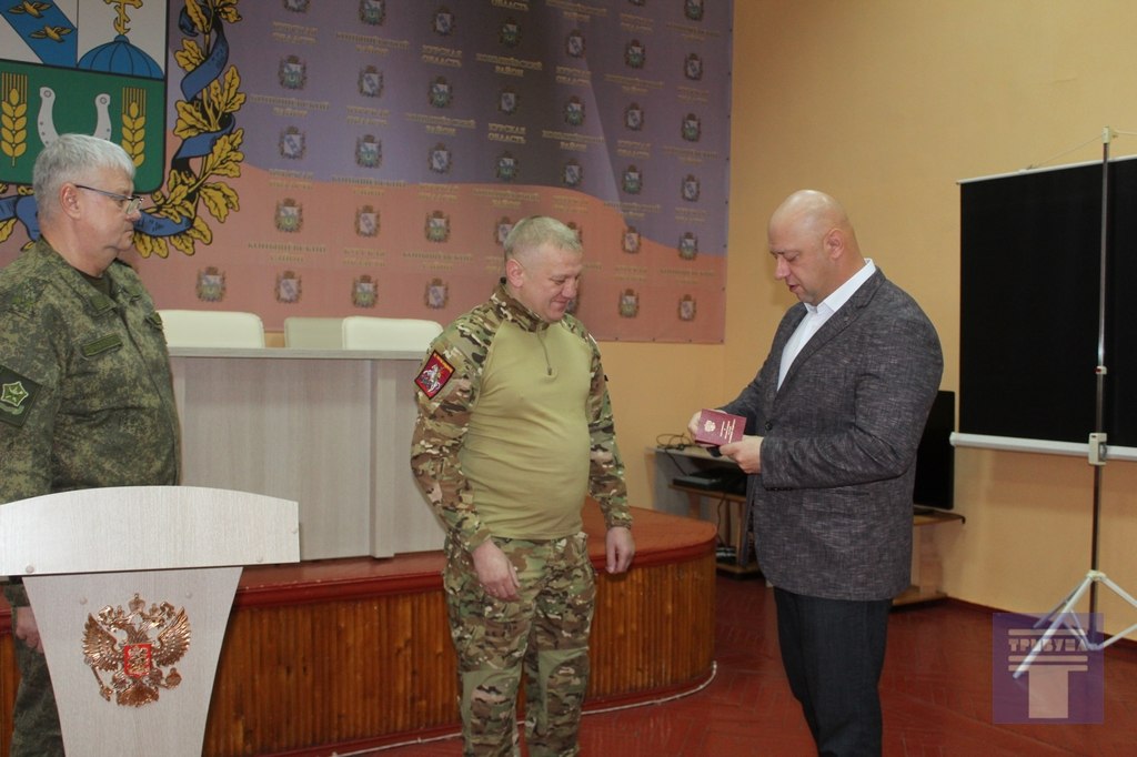 Сегодня, вручил Орден Мужества участнику специальной военной операции Андрею Афанасенко. На вручении присутствовали районный военный комиссар Александр Бессонов и социальный координатор Государственного фонда поддержки участников специальной военной операции «Защитники Отечества» по Конышевскому району Татьяна Селиванова.