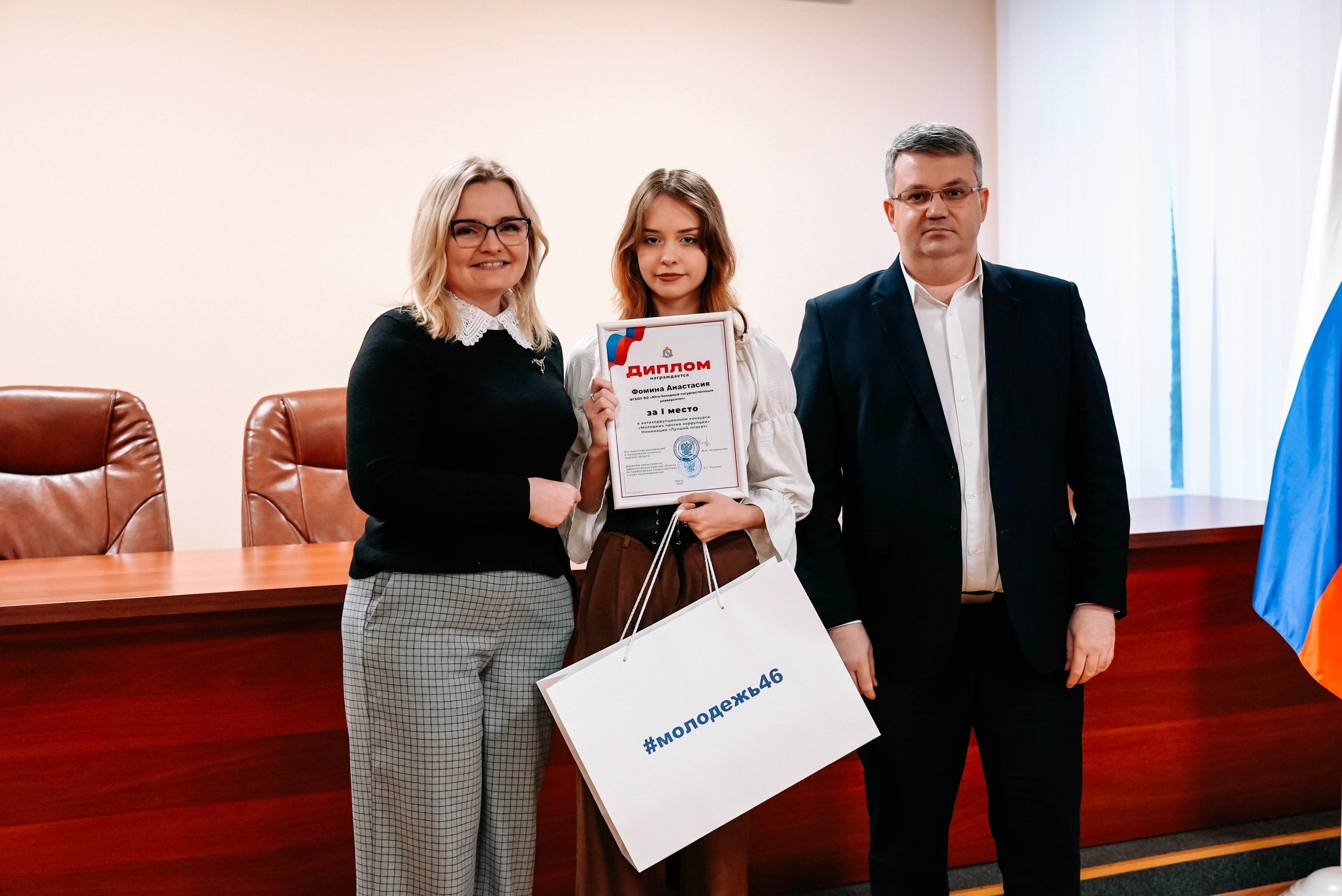 Награды победителям вручили и.о. министра внутренней и молодежной политики Курской области Мария Кондрашова и директор департамента Администрации Курской области по профилактике коррупционных и иных правонарушений Андрей Ишунин.