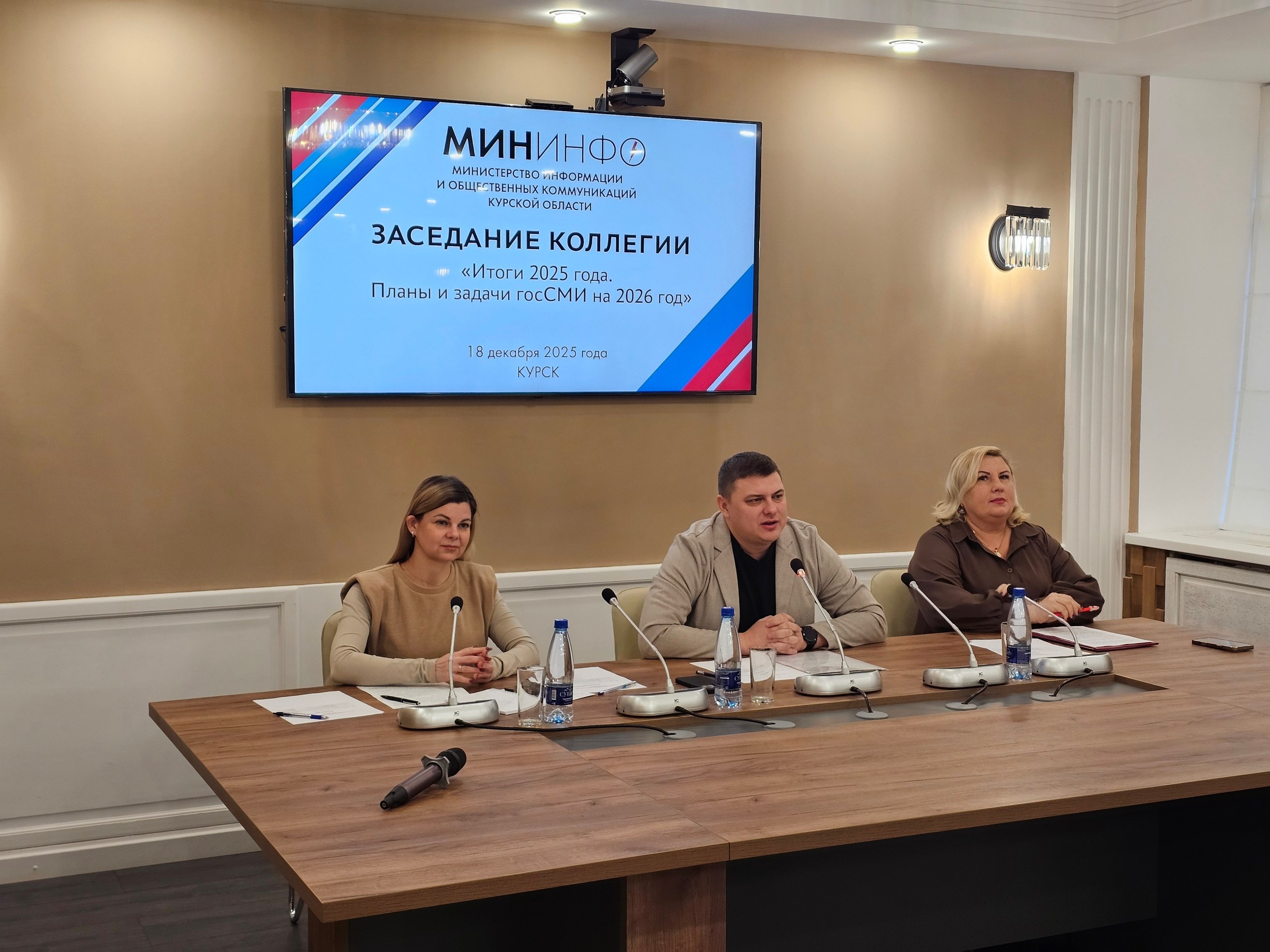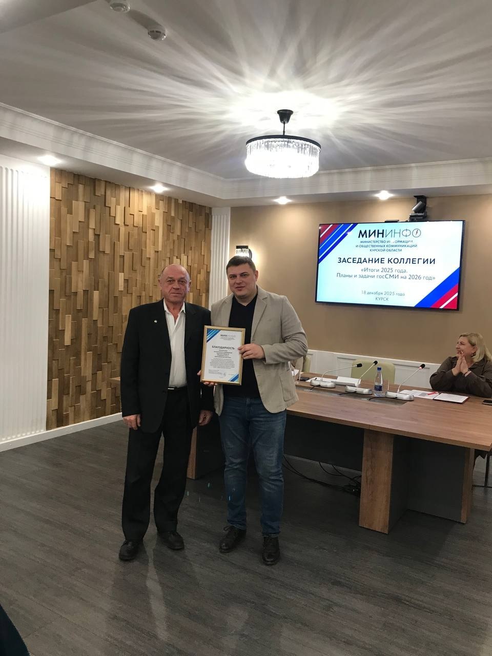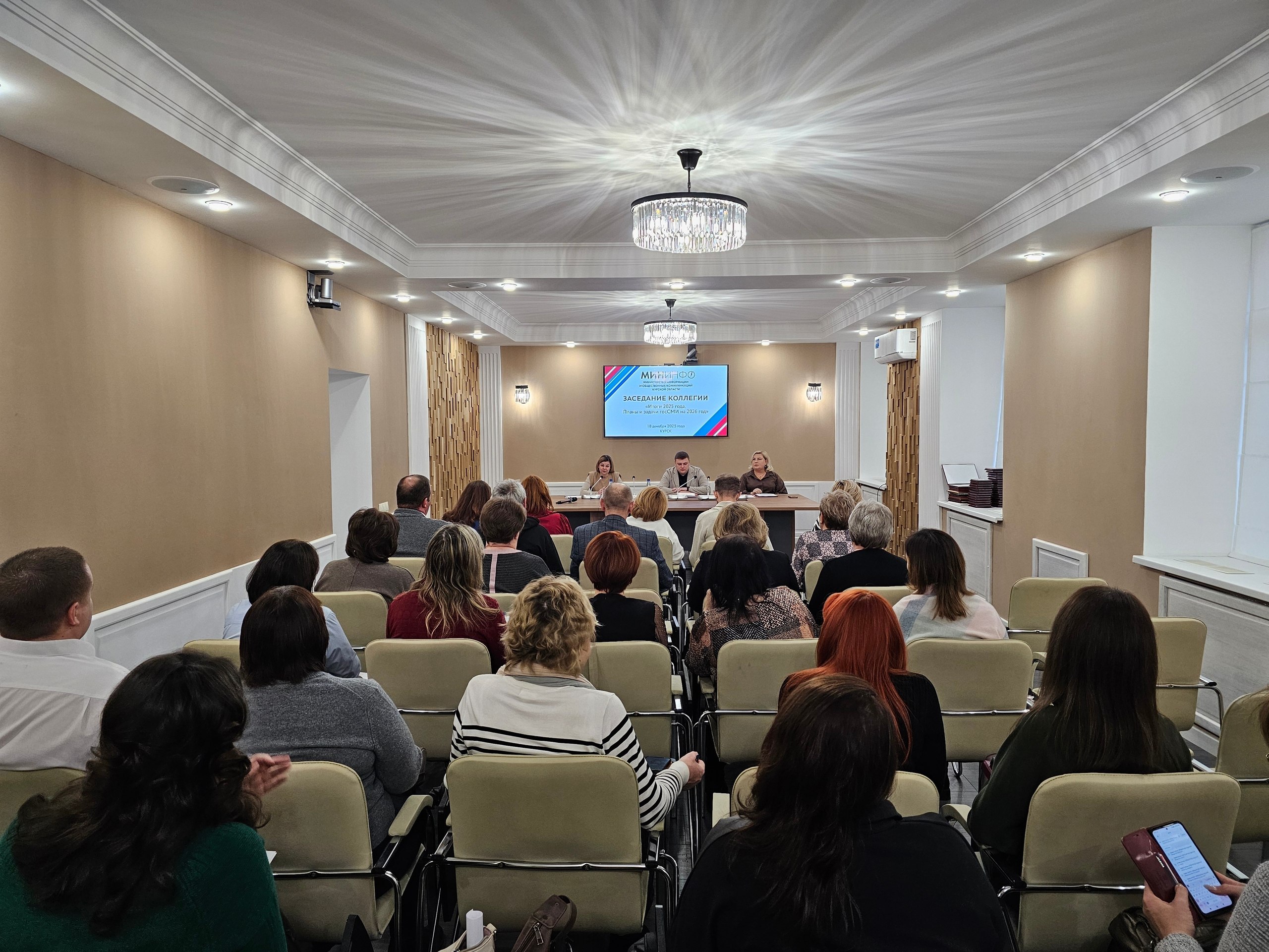 В Доме журналиста на заседании коллегии Министерства информации и общественных коммуникаций Курской области подвели итоги работы региональных СМИ за 2025-й и обсудили планы на будущий год. В заседании приняли участие заместитель губернатора Виктория Лукашова, министр информации и общественных коммуникаций Михаил Шумаков, руководители районных газет, ТРК «Сейм», газеты «Курская правда» и РИА «Курск». Мероприятие стало важной площадкой для анализа результатов работы, обмена мнениями и выработки единых подходов к развитию медиа.