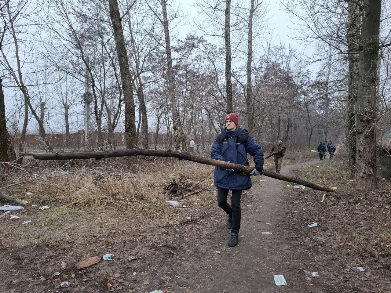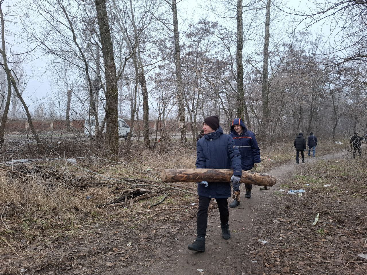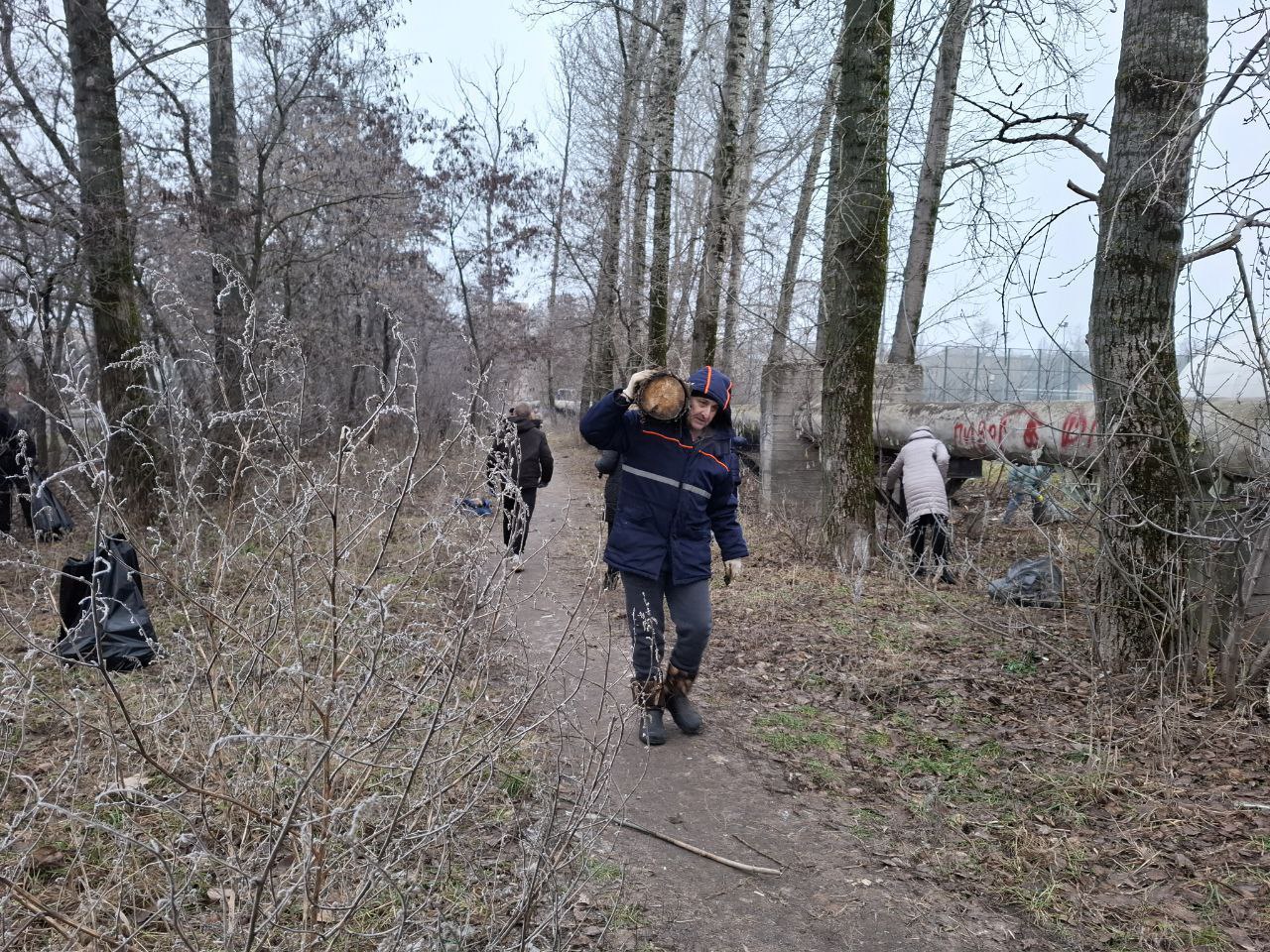 Более 60 человек за час работы собрали более 10 кубических метров бытового мусора и более 60 кубических метров порубочных остатков и древесины. Мусорные мешки оставили вдоль улицы Ольшанского для удобства работников САБ. Ветви и бревна вывезут в течение недели с помощью спецтехники.