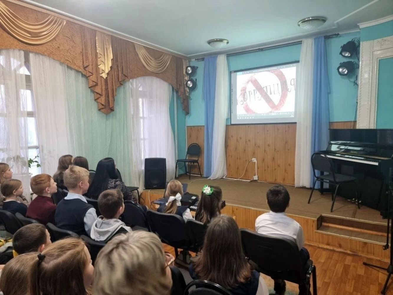 В Фатежской детской школе искусств прошёл информационный час «Коррупции – НЕТ!», который подготовила и провела преподаватель Екатерина Русу.