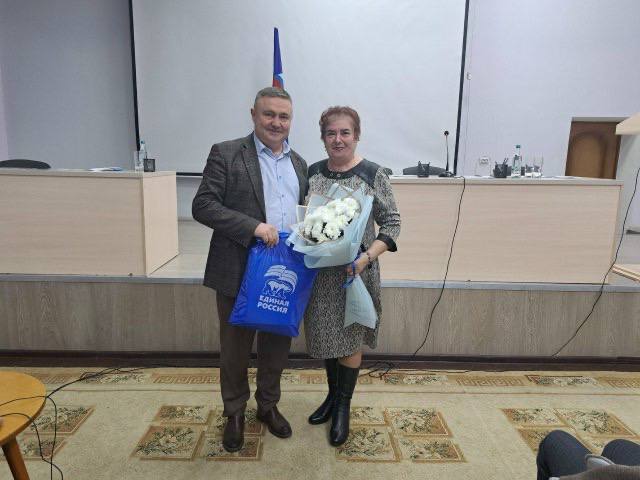 На конференции Быковский вручил партийные билеты новым членам «Единой России» и поздравил с днем рождения члена местной контрольной комиссии Ларису Ломакину.