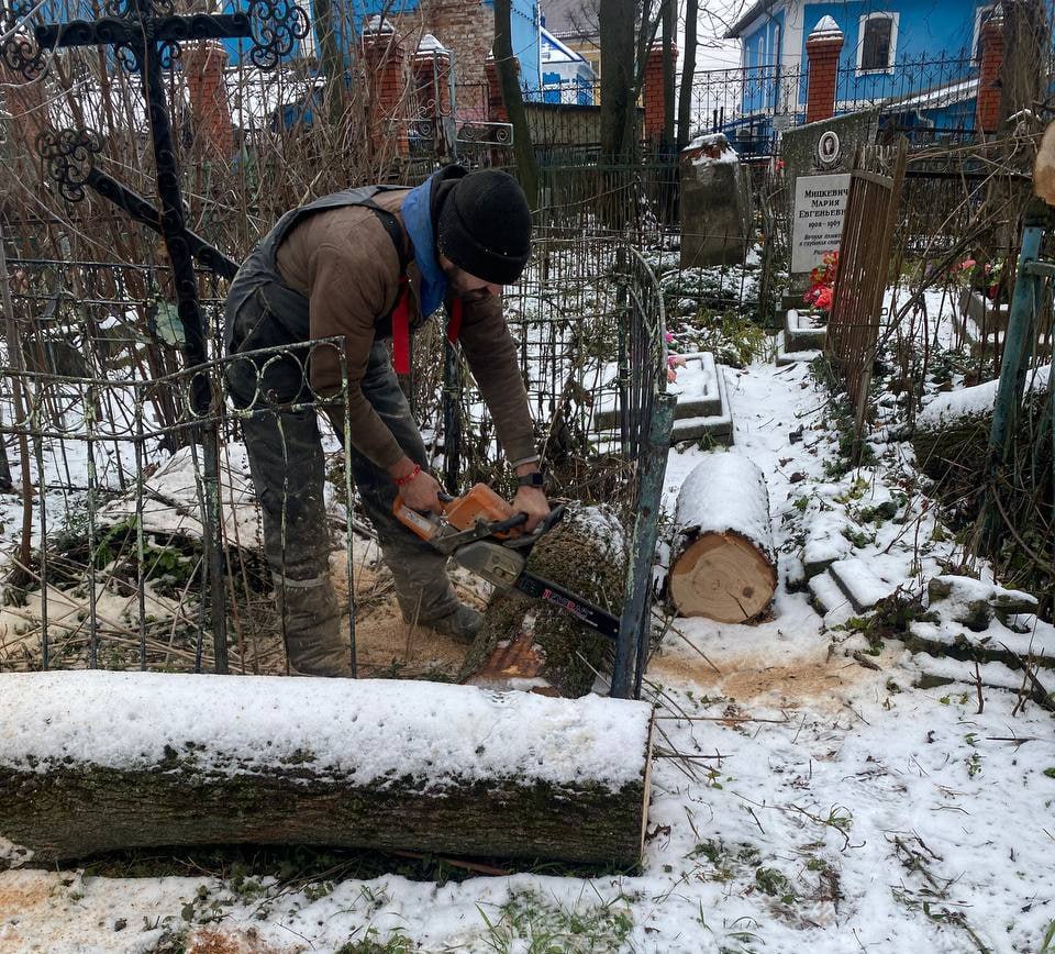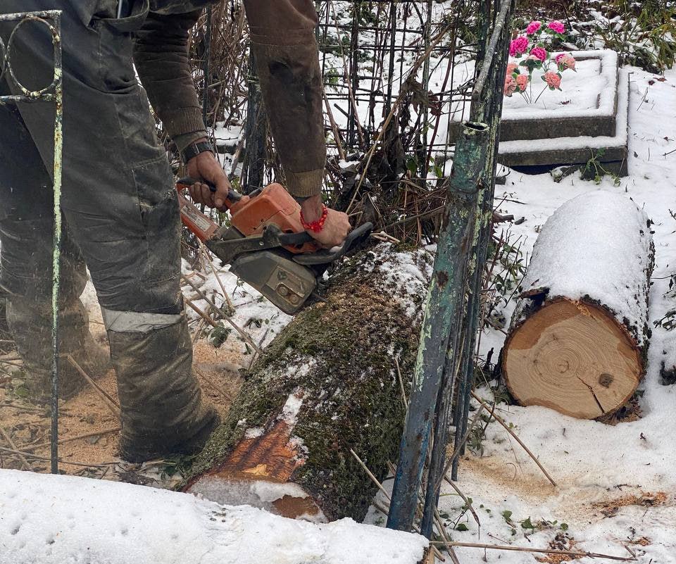 По поручению главы Курска Евгения Маслова подрядная организация начала уборку упавших деревьев на Никитском кладбище.