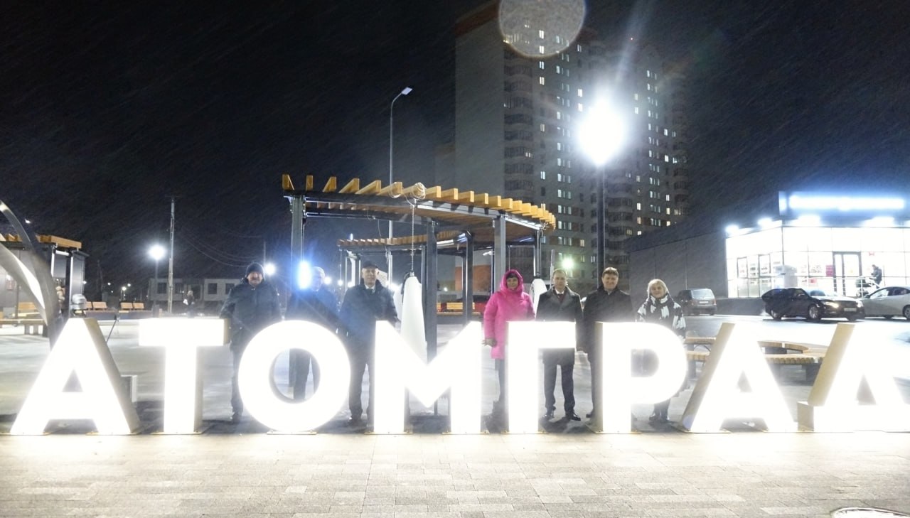А в завершении посетили новый микрорайон «Атомград», где открыли аллею с одноименным названием «АТОМГРАД» - уникальное общественное пространство – подарок городу от Госкорпорации «Росатом».