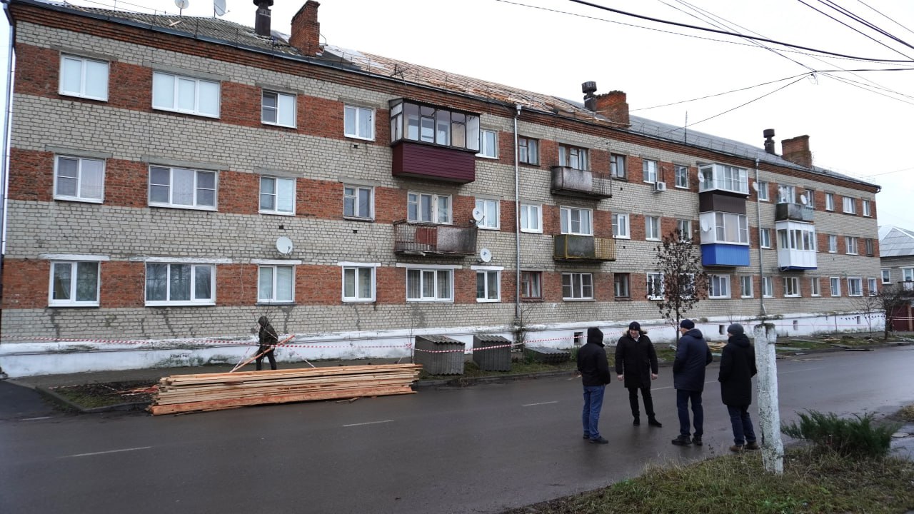 Здесь при поддержке Министерства ЖКХ Курской области идёт замена кровли. Это завершающий дом из перечня объектов, запланированных к ремонту в 2025 году, при этом восстановление повреждённых домов в городе продолжается.