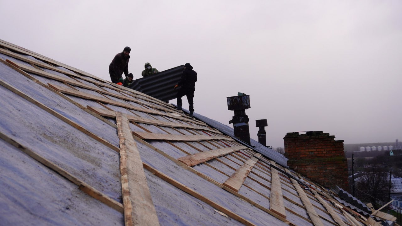 По данному адресу работы по восстановлению кровли идут хорошими темпами, бригада работает организованно. На других объектах восстановительные работы также продолжаются — не без сложностей, связанных с обстановкой, но работа не останавливается, восстановление повреждённых домов остаётся на контроле.