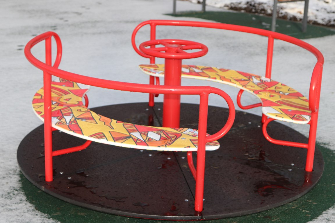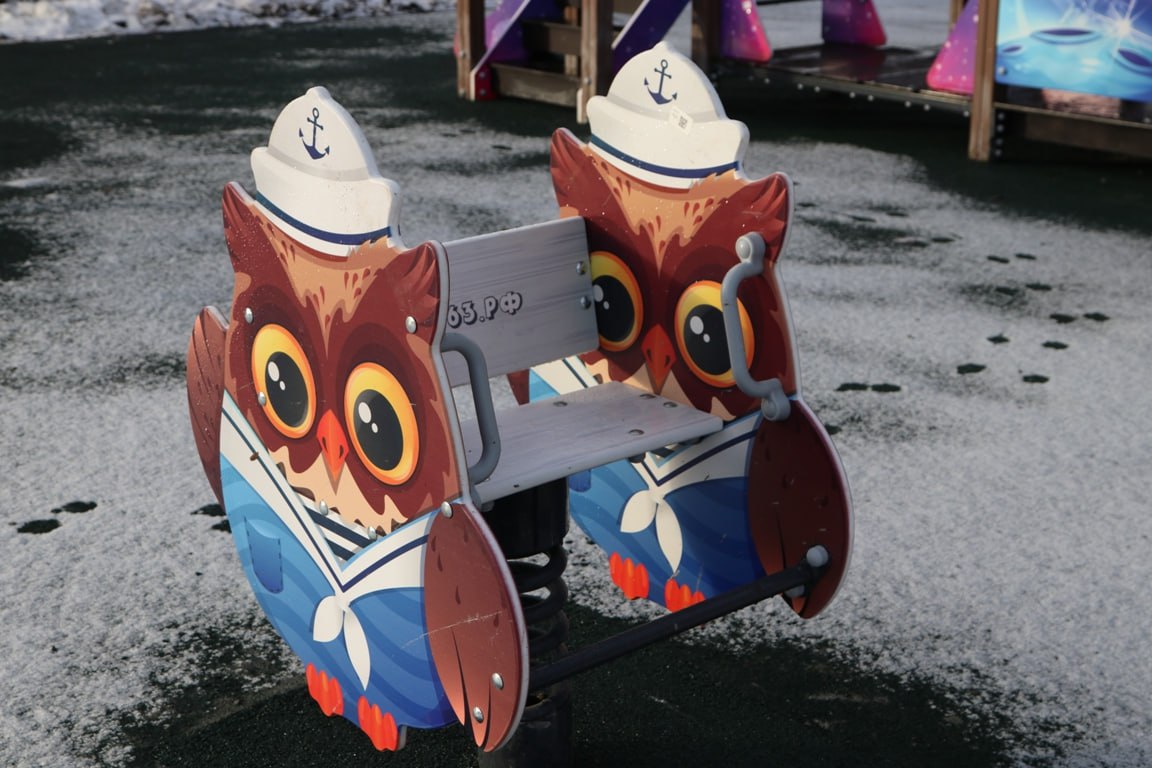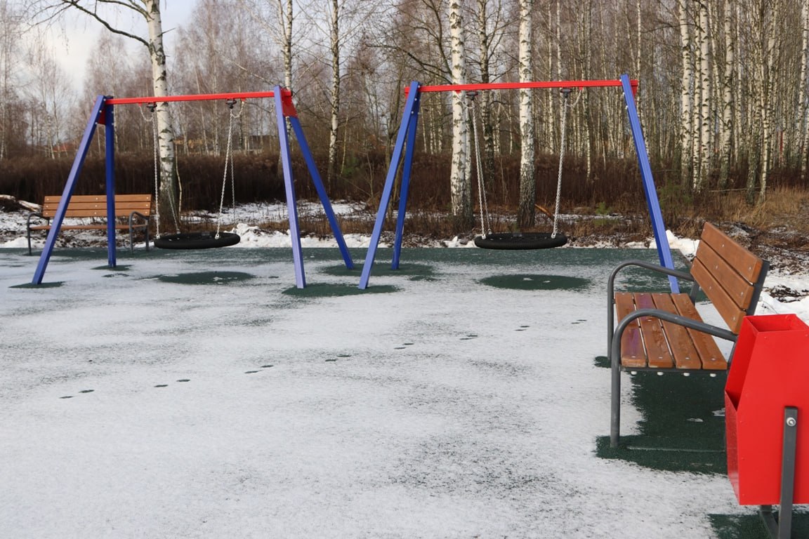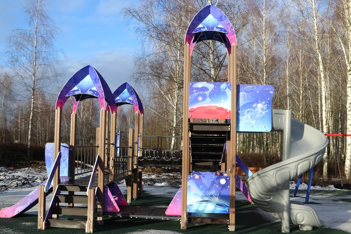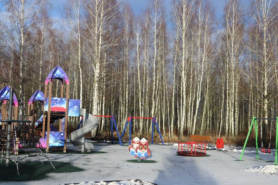 Подрядной организацией в короткий промежуток времени по периметру всей площадки был установлен бортовой камень, произведено устройство асфальтового покрытия, поверх которого уложено бесшовное резиновое покрытие. Сама площадка включает в себя горку с винтовым скатом, канатную пирамиду, качели «Гнездо», круговые и подвесные качели, качели на пружине, а также лавочку и урну. Всё оборудование сертифицировано. Площадка установлена с соблюдением всех норм безопасности.