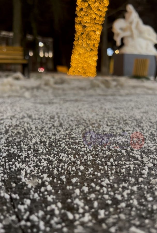 Необычный снег, похожий на пенопласт, выпал ночью в Курске