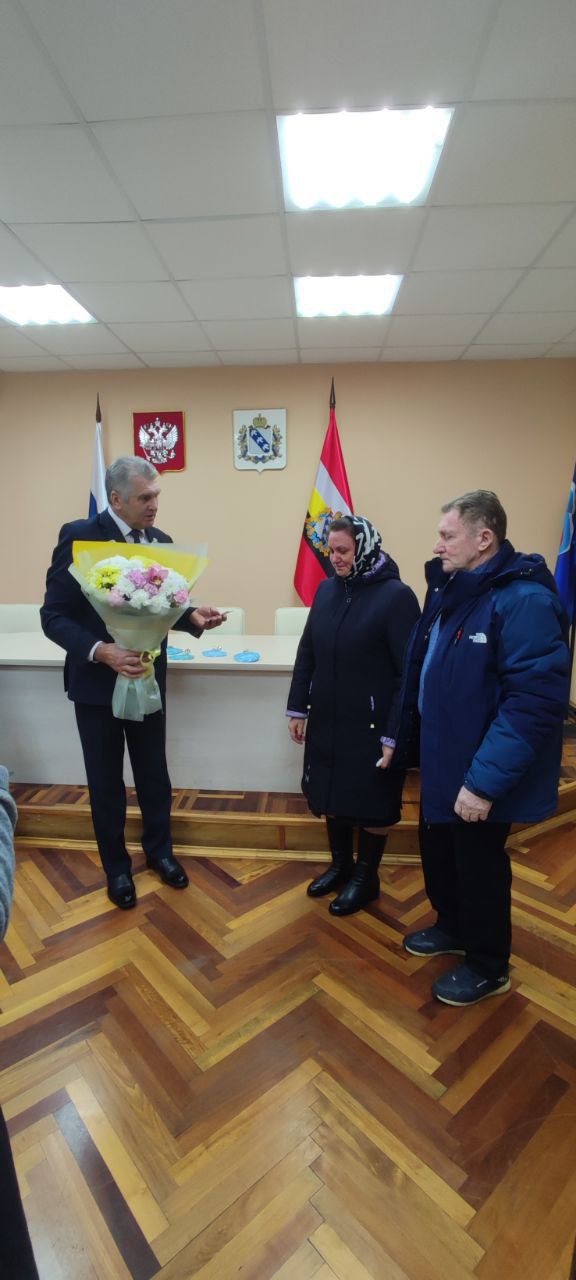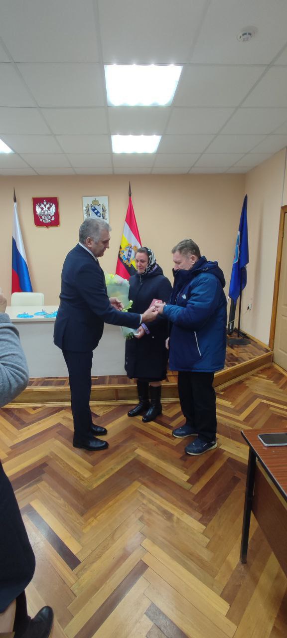 Сегодня в Администрации Беловского района вручил родителям погибшего участника СВО Корягина Владимира Сергеевича.